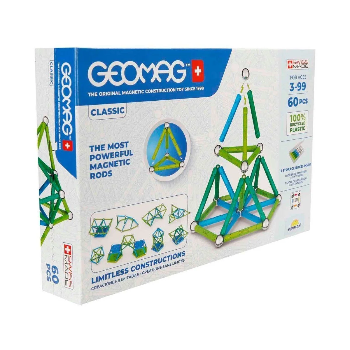 60 parça bir araya geldiğinde neler mi oluyor? Ortaya birbirinden farklı geometrik şekiller ve tasarımlar çıkıyor. Hayal gücüne sınır çizmeyenlerin çok seveceği Geomag Classic Manyetik Zeka Oyunu 60 Parça ile tanışın. Güçlü manyetik çubuklar ile basit ya da karmaşık şekiller oluşturabilir ve onların nasıl birer sanat eserine dönüştüğünü keyifle izleyebilirsin. Oynaması hem çok eğlenceli hem de kolay olan yapım seti ile 28 adet renkli manyetik çubuğu, 28 adet manyetik bilye yardımı ile kolayca bir araya getirerek kendi şekillerini oluşturabilirsin. Oluşturacağın şekle göre çubuk ekleyip çıkarabilirsin. 3D manyetik yapıların, kare ve beşgen tabanların üzerinde yükselmesini sağlayarak eğlenceyi katlayabilirsin. Çocukların; dikkatinin, ince motor becerilerinin ve hayal gücünün gelişmesine katkı sunar. Çocukların yaratıcı oyunlar oynamasını sağlayarak onların merakını destekler. Kutu içerisinde; 28 adet manyetik çubuk, 28 adet manyetik bilye ve 4 adet taban bulunmaktadır.