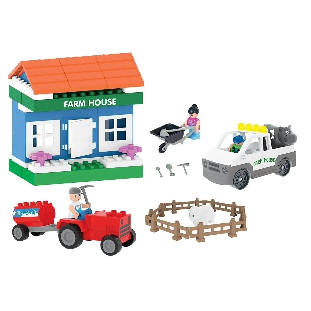 Ürün 3 yaş ve üzeri çocuklar için uygundur. İçerisinde 3 oyuncak figür, 2 hayvan figürü, 1 traktör, 1 römork, 1 araç, 1 el arabası, 6 çit ile birlikte toplam 59 parçadan oluşmaktadır.