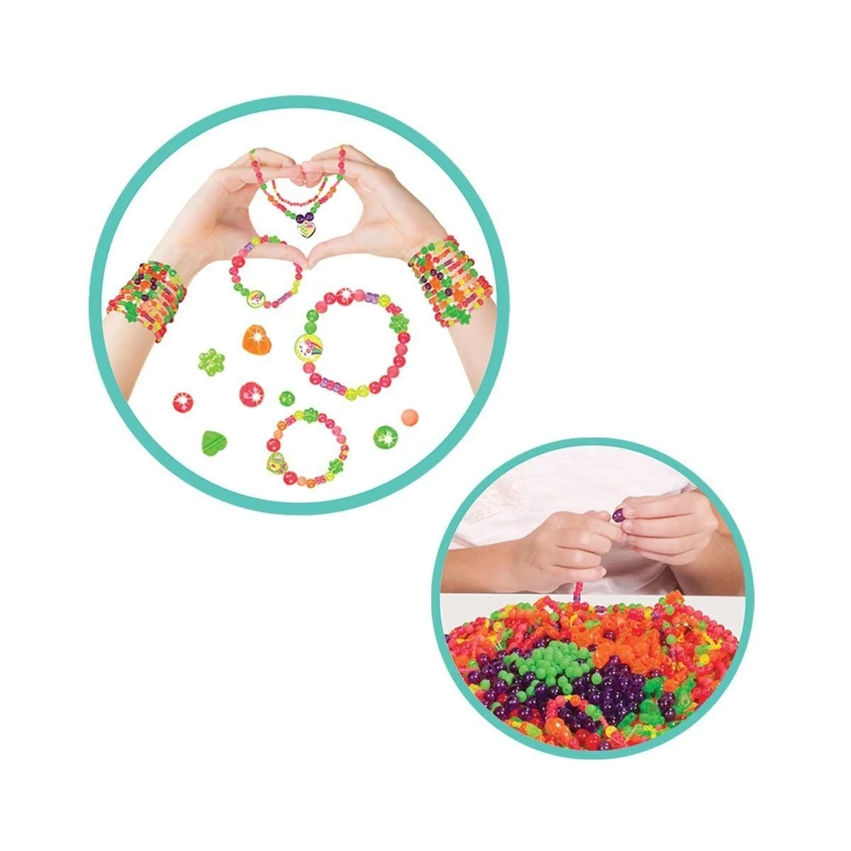 Çocukların, birlikte zaman geçirmeleri, kendi özel bileklik ve kolyelerini üreterek, yaratıcı olmaları için harika bir oyuncaktır.