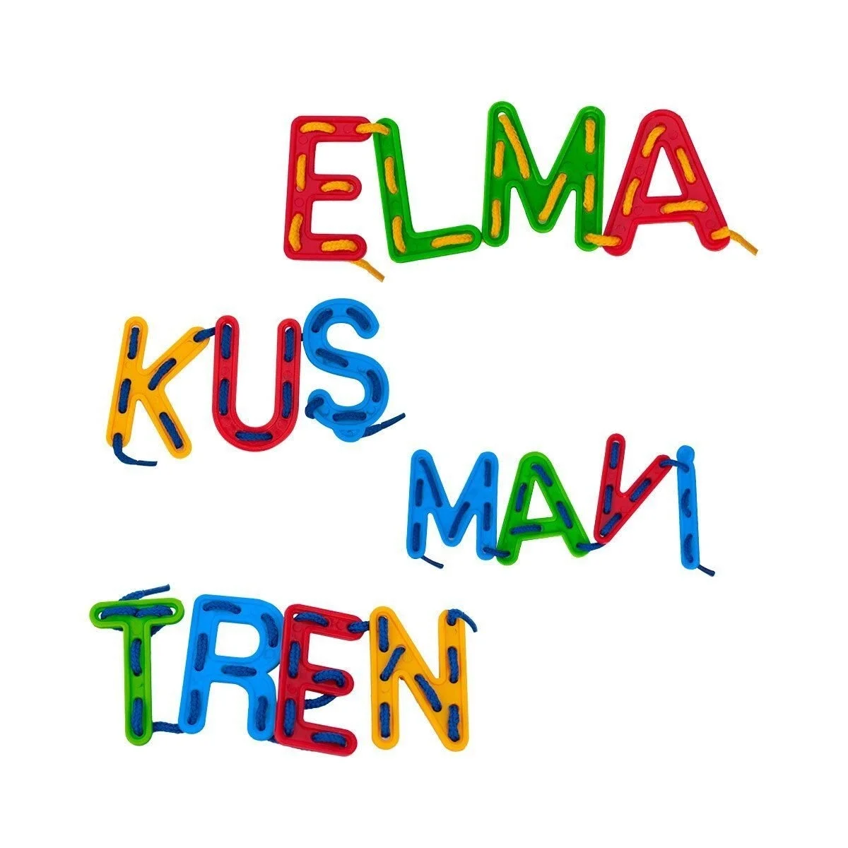 Ürün; 12 adet ip ve 128 adet harf ile birlikte 140 parçadan oluşmaktadır.