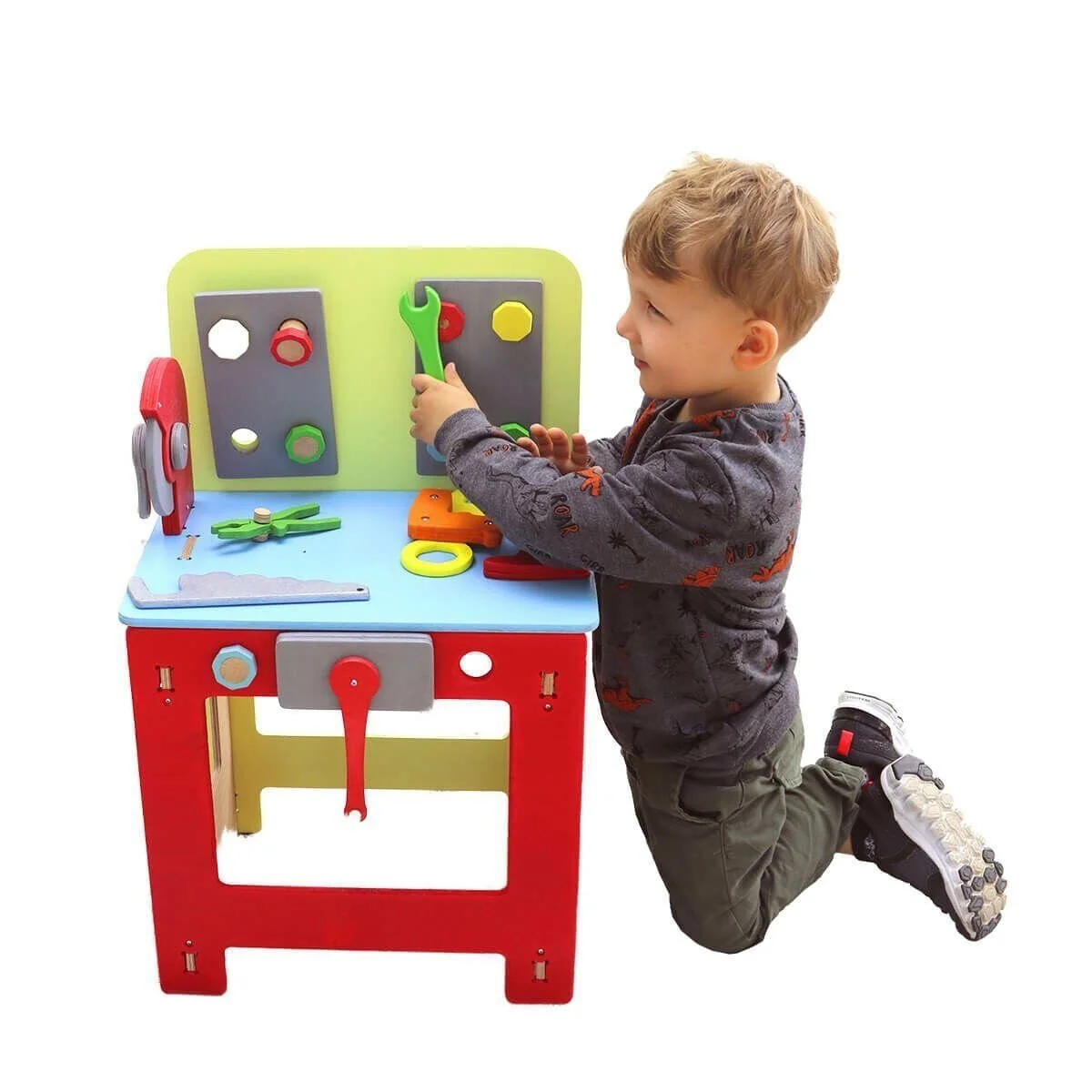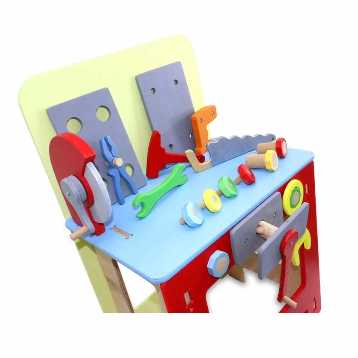 Tamamen ahşaptan yapılmış bu Ahşap Tamir Tezgahı ve çocuk tamir seti oyuncakları 3+ yaş yürümeye başlayan bebeklerin el-parmak, kol-bilek kaslarını, motor becerilerini ve dokunma duyusunu geliştirir.