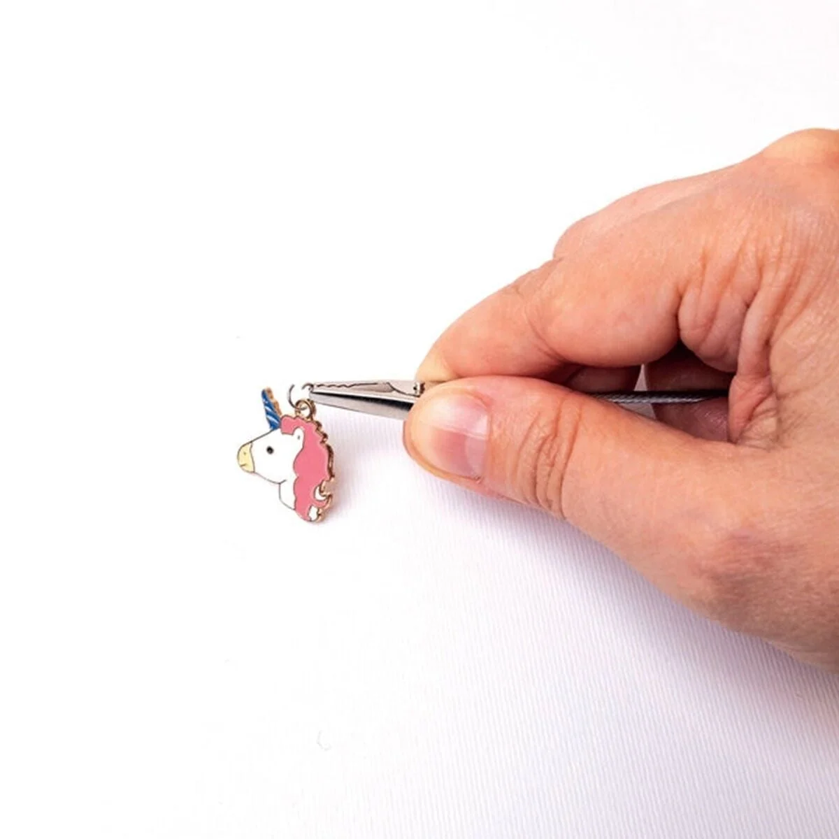 Tek boynuzlu at ve gökkuşağı takılarıyla renkli bilezikler yapabileceğiniz kreatif bir oyun kiti.