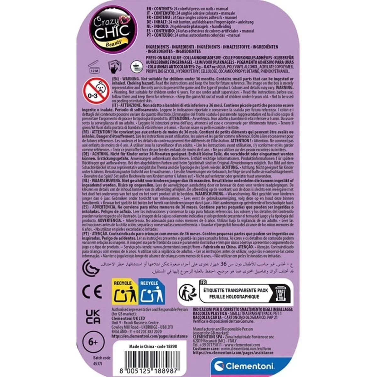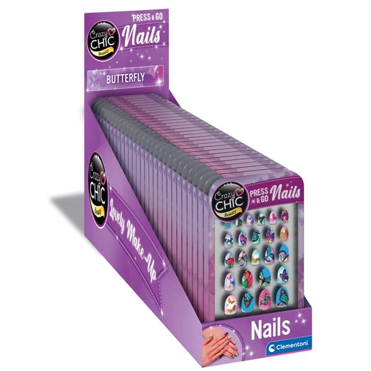 Sette "kelebek" temalı farklı boyutlarda 24 tırnak bulunur Küçük kızların güzellik dünyasında yaratıcılıklarını geliştirmelerine yardımcı olan oyun seti Makyaj malzemeleri test edilmiştir ve güvenlidir, alerjik ve toksik değildir; böylece küçük kızlar tamamen güvenli bir şekilde oynayabilir