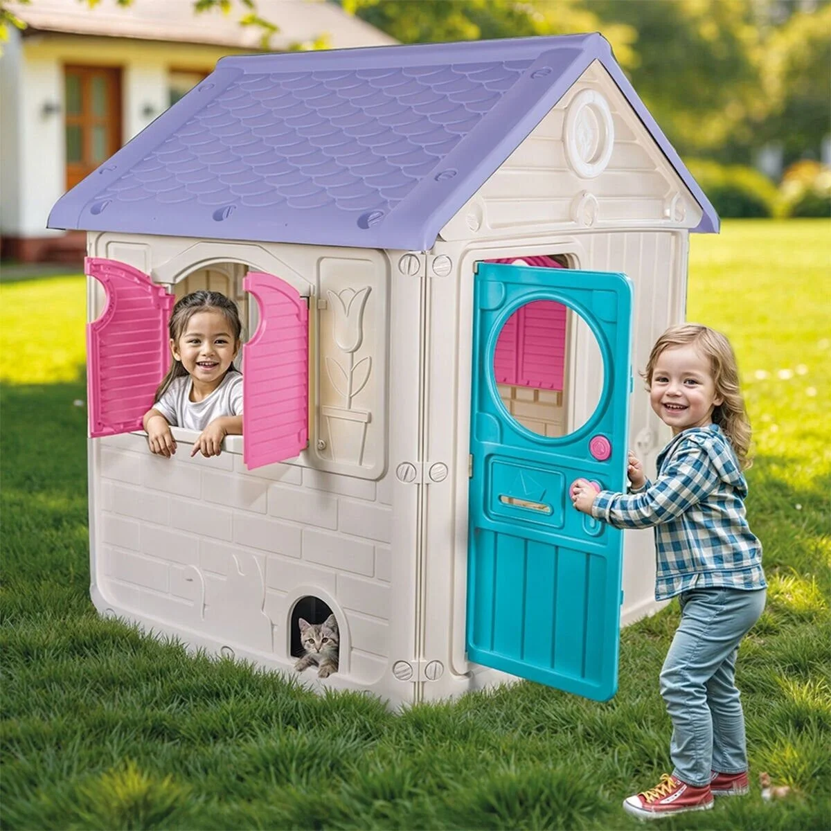 Çocuklar için özel olarak tasarlanan bu oyun evi; dayanıklı yapısı, yuvarlatılmış kenarları ve eğlenceli tasarımıyla hem güvenli hem de keyifli bir oyun alanı sunar.