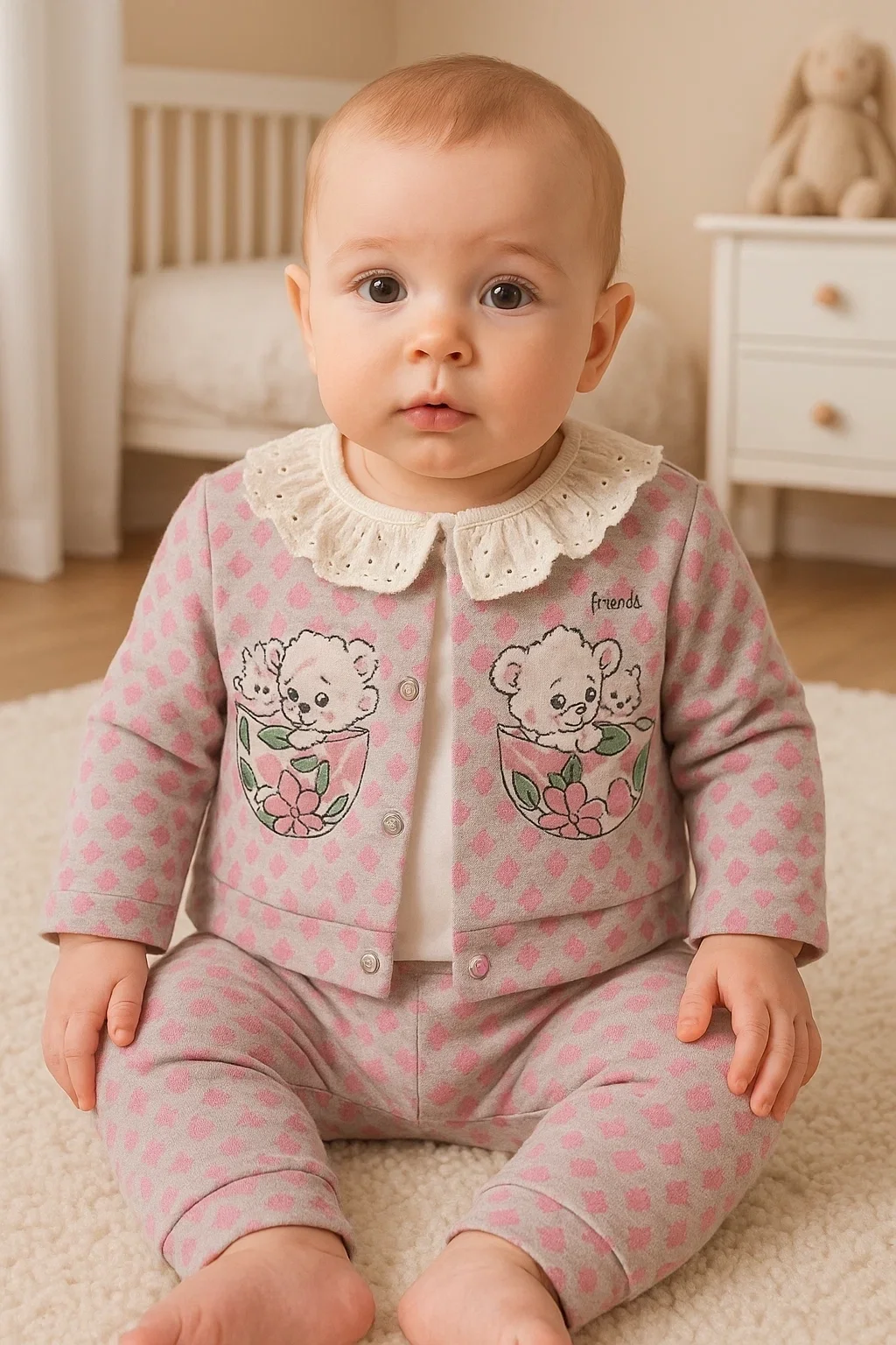 3-6-9 Ay Kız Bebek Takım Brode İşlemeli Kalp Desenli 3'lü Hırkalı Lila Lila renkli brode işlemeli kalp desenli kız bebek hırka seti, 3-6-9 ay aralığındaki bebekler için idealdir. Üç parçalı bu takım, yumuşak ve kaliteli kumaştan üretilmiştir. Zarif brode kalp işlemeleri ile bezeli bu set, bebeğinize şık ve zarif bir hava katar.