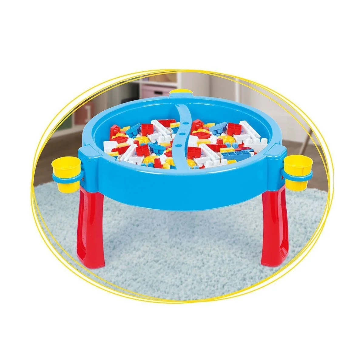 100 parça mega bloklar vardır ve aynı zamanda ders çalışma masası olarakta kullanılabilir.