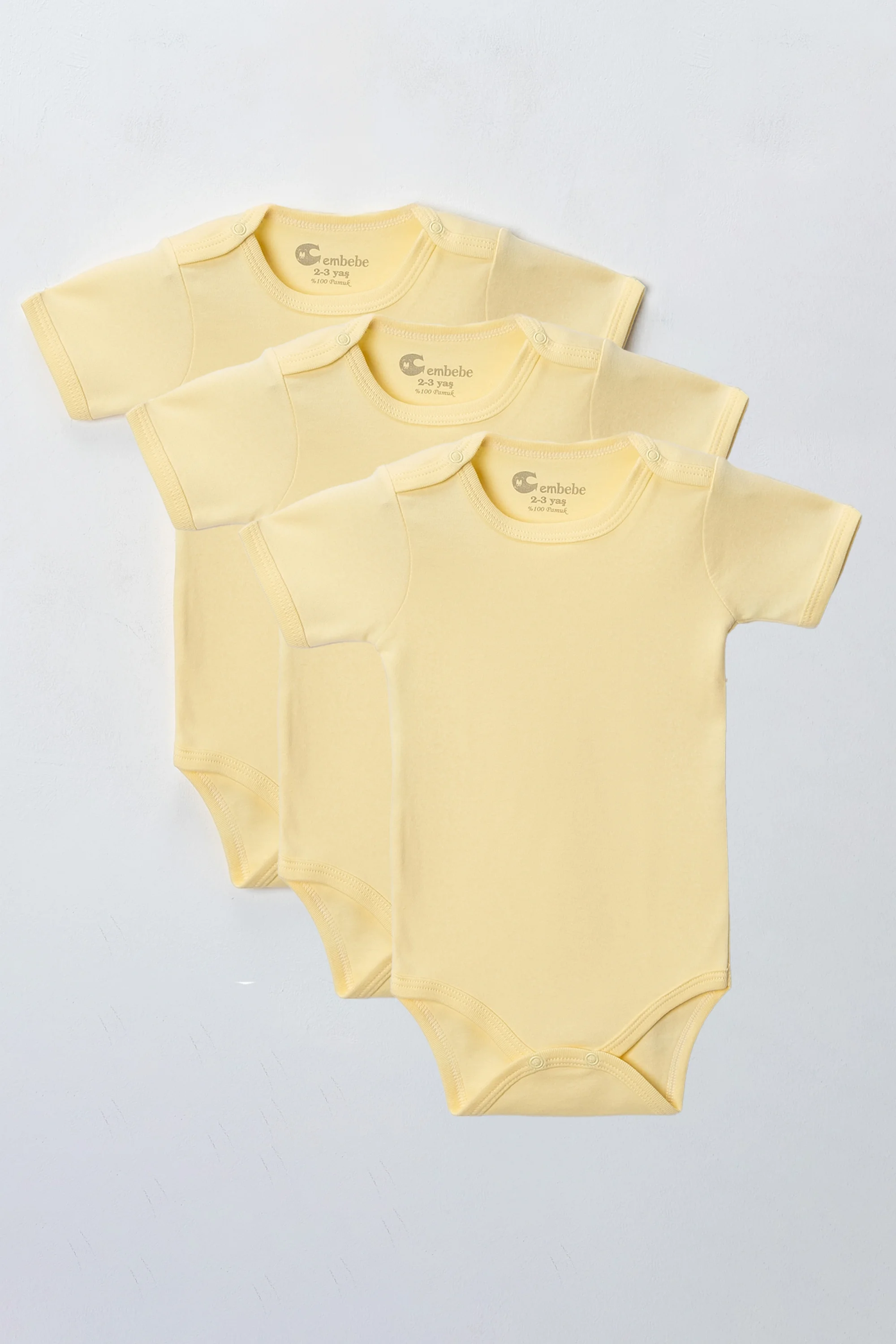 3’lü Kısa Kol Büyük Beden Body Zıbın Sarı – Pamuklu, Alttan Çıtçıtlı, Rahat, Çocuklar İçin