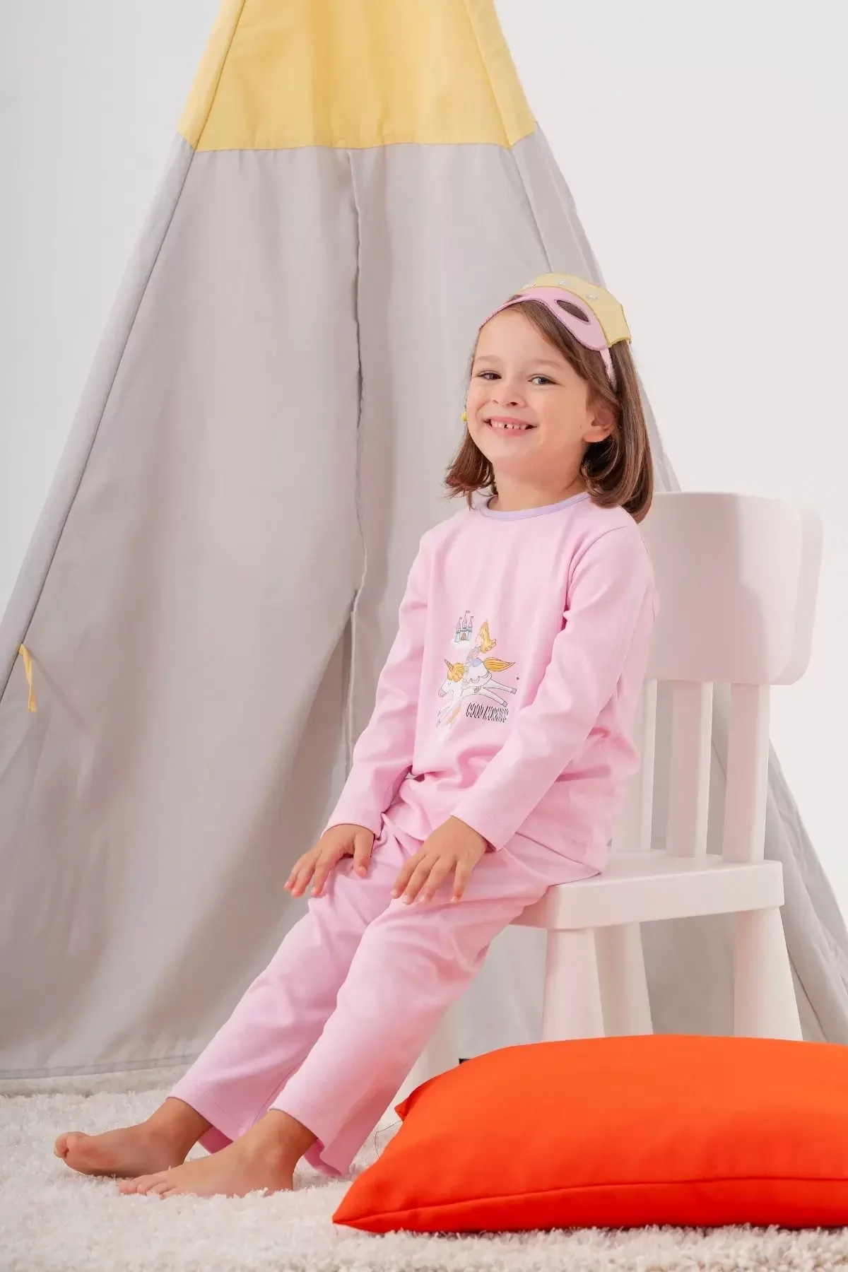 4-7 Yaş Unicorn Çanta Ve Maskeli Kız Çocuk Pijama Takımı Pembe