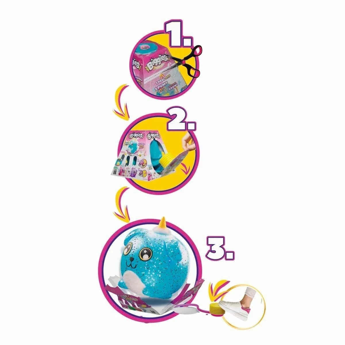 Peluş, gizemli bir kutu içinde gelir; şişirme pompasını ortaya çıkartın ve peluş büyümeye başlayana kadar pompalayın. Pompalamaya devam ederseniz peluşün xxl boyutlarına ulaştığını görünce çok eğleneceksiniz. Açılış deneyimi, oyun sürecinin bir parçası haline gelir.