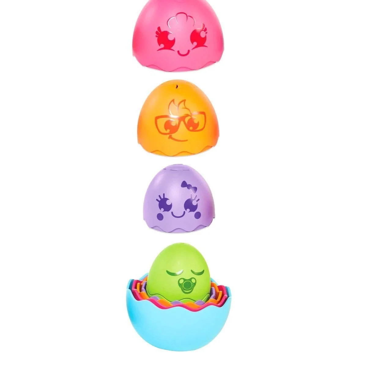 Birlikte mükemmel bir uyumda olan bu yumurtaları hep beraber açalım. Önce baba yumurta, sonra anne yumurta, abi, abla yumurta ve bebek yumurta! Ortadaki bebek yumurtaya ulaşmak için iç içe geçmiş kabukları çıkart. Bebek yumurtaya ulaşınca kafasına bastır ve neşeli sesini dinle. Haydi şimdi de tüm aileyi tekrar bir araya getirelim! Üstelik Saklambaçlı İç İçe Yumurtalar suda vakit geçirmeye bayılıyorlar! Sen de Saklambaçlı Yumurtaları yanına al ve banyoda kabuklarıyla keyifli bir zaman geçirmeye başla!