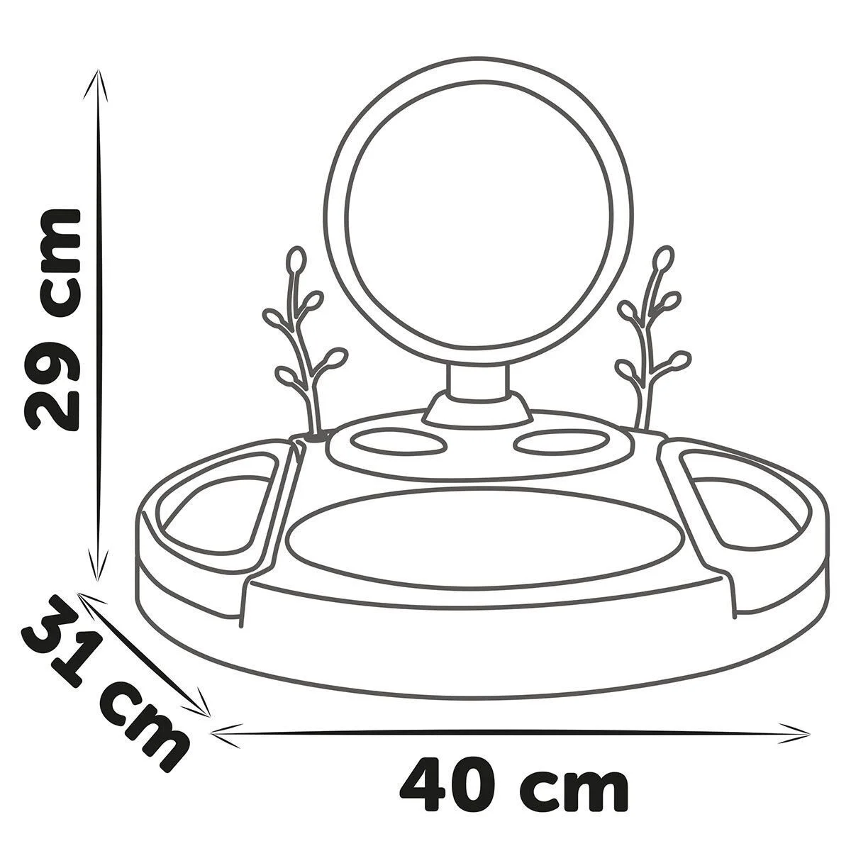 Ürün, çocuğun boyuna uyacak şekilde çıkarılabilir ve ayarlanabilir bir ayna, ek depolama alanları ortaya çıkaran döner raflar ve çocuğun bilezik, yüzük, kolye vb. asabileceği iki mücevher ağacı içerir.