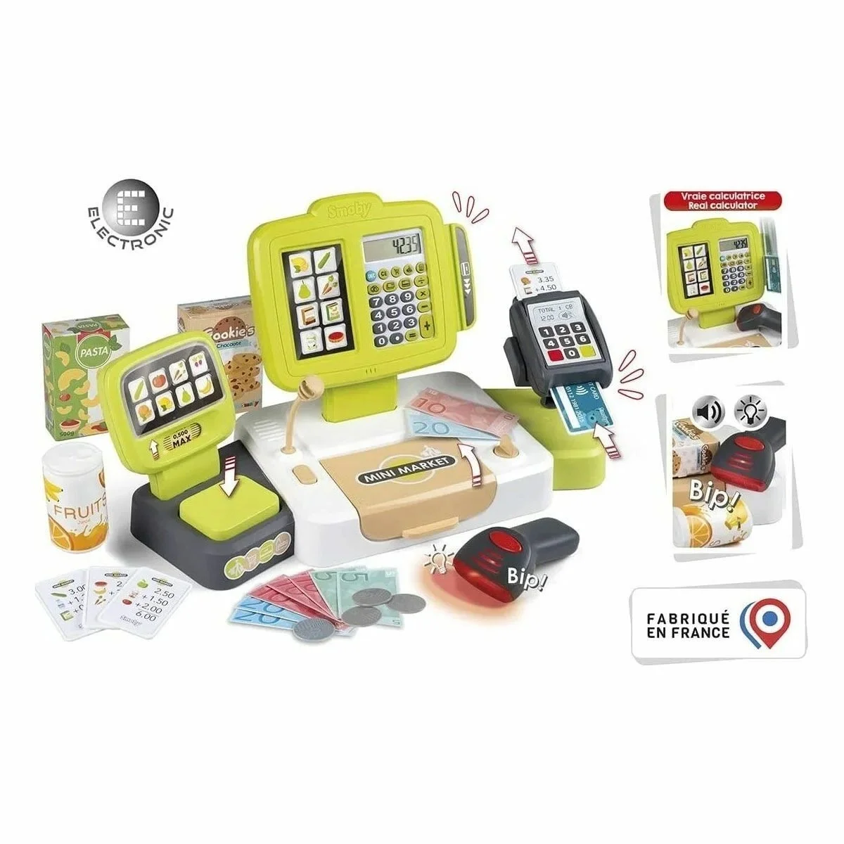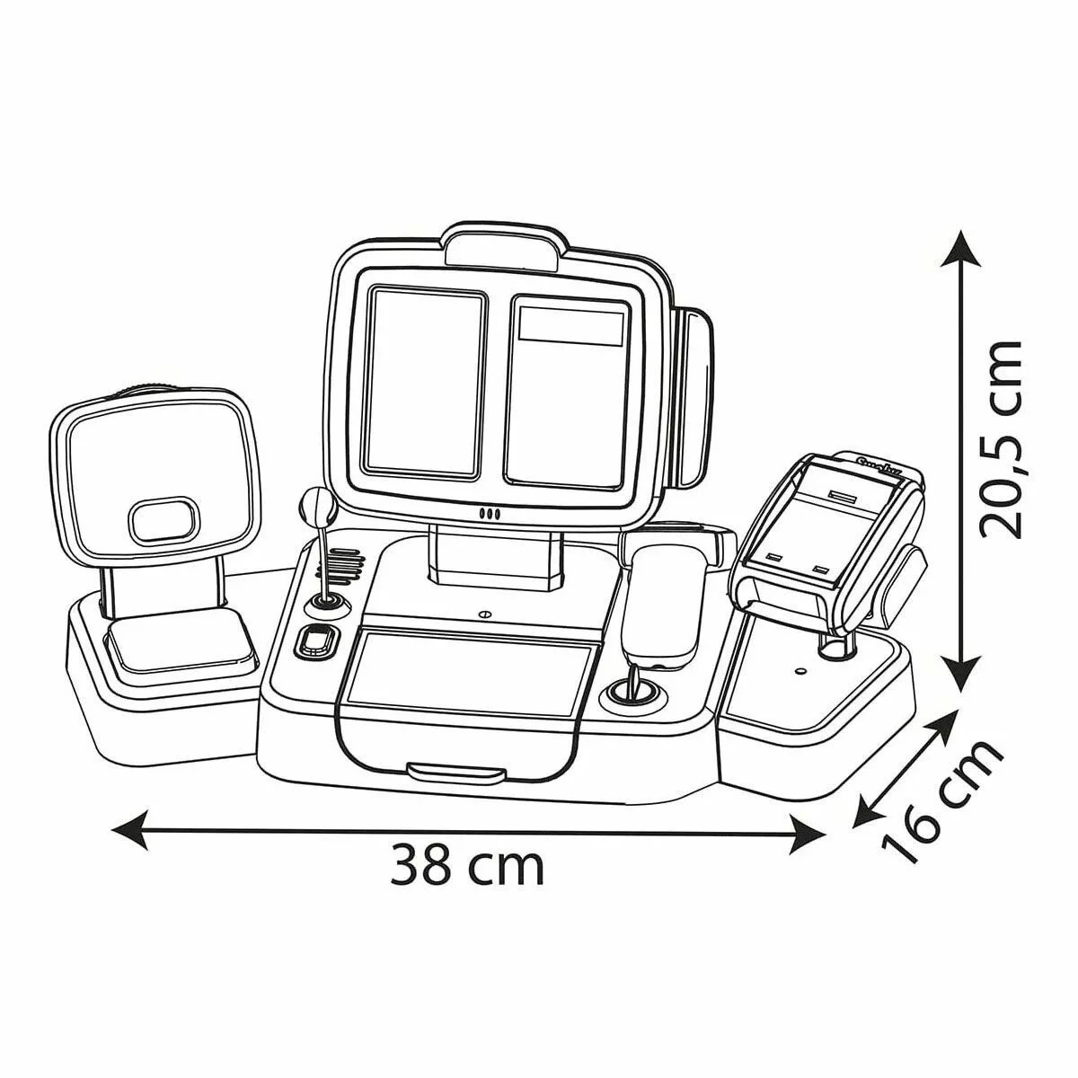 Mağazanızın iyi çalışması için gerekli tüm unsurlara sahiptir: para çekmecesi, gerçek bir hesap makinesi, mikrofon, banka kartı okuyucusu ve mekanik hareketli bir terazi (üzerine bir şey koyduğunuzda görüntülenen ağırlık otomatik olarak ayarlanır) ).