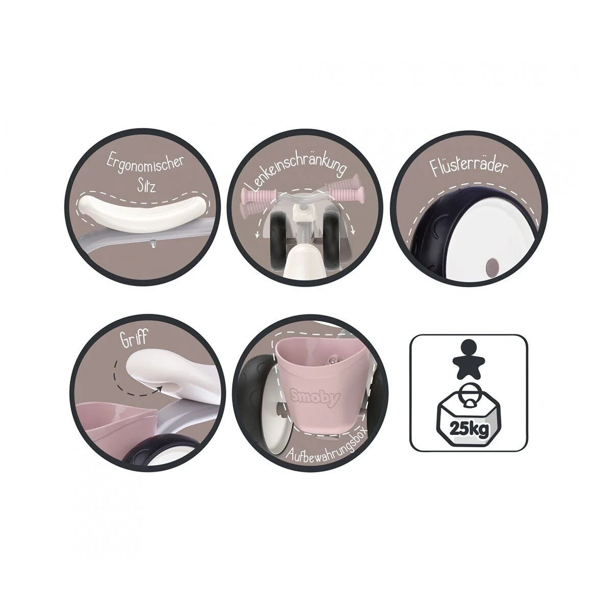 Şekilli Smoby Rookie binilebilir arabasıyla çocuklar, dört tekerlek üzerinde ilk bağımsız gezilerine çıkabilirler. Çekici tasarımı ve narin pastel tonlardaki uyumlu renk düzeniyle, bu sevimli koşu arabası hem çocukların hem de ebeveynlerin kalbini fethediyor.