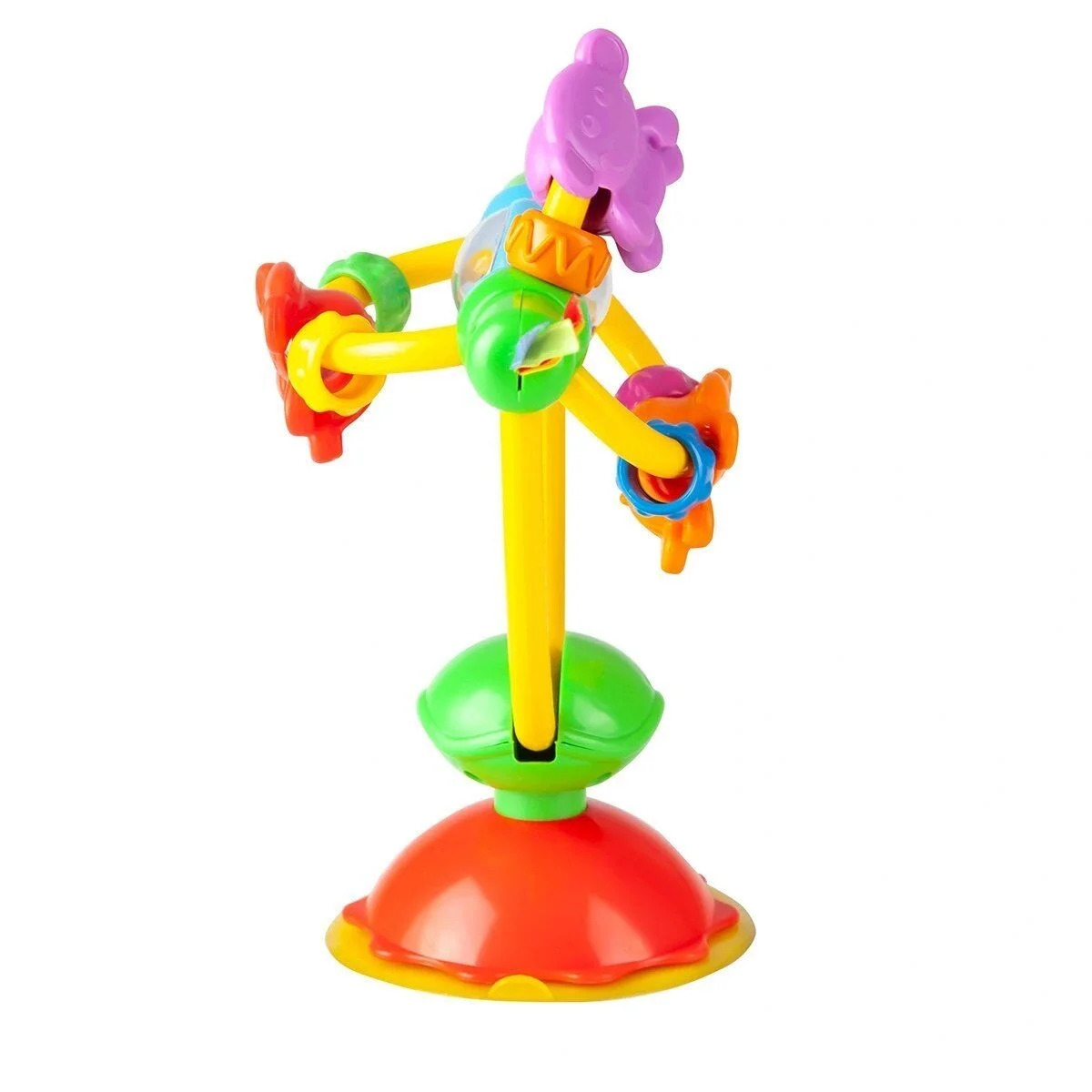 Bebek rengarenk tasarlanmış oyuncak arkadaşlarını etraflarında döndürebilir ve çıngırağıyla oynayabilir.