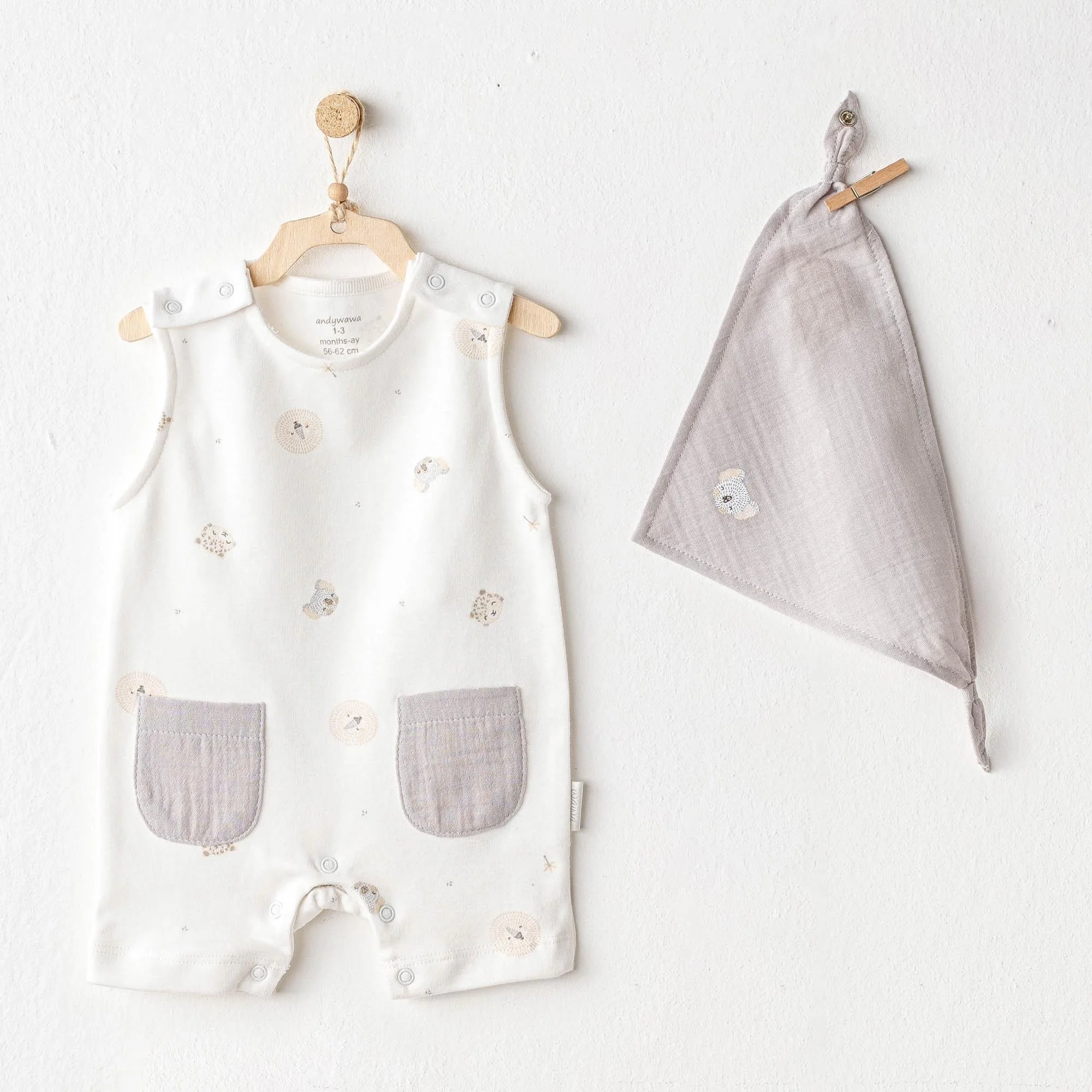 Andywawa Ac25846 Happy Animals Bebek Tulum Takım Ekru