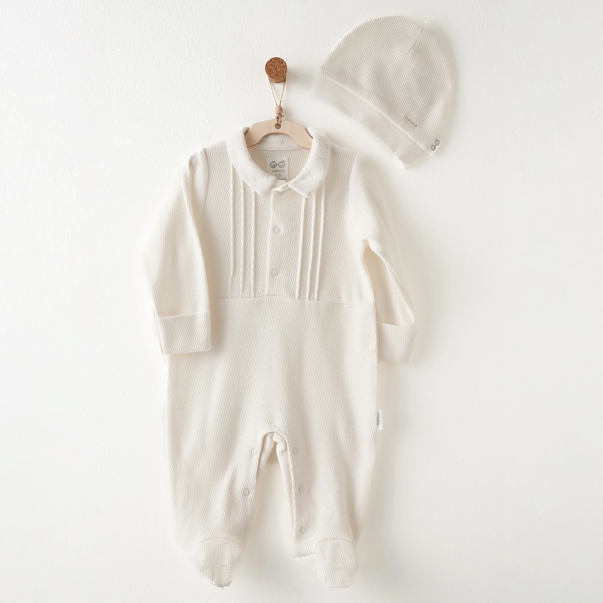 Tekstil Beden ve Ölçü Bilgileri Bebeklerin gelişim süreçleri farklılık gösterebileceğinden, ay bilgisinin yanı sıra boy ve kilo tablosuna bakılmalıdır. 0-3 Ay: 50-56 cm boy ve 3-5 kg ağırlığındaki bebekler için uygundur. 3-6 Ay: 62-68 cm boy ve 5-7 kg ağırlığındaki bebekler için ideal kalıptır. 6-9 Ay: 68-74 cm boy ve 7-9 kg arasındaki bebeklerin kullanımına uygundur. 9-12 Ay: 74-80 cm boy aralığındaki hareketli bebekler için tasarlanmıştır. 12-18 Ay: 80-86 cm boy ölçüsüne sahip, adım atmaya başlayan minikler içindir. Ara bedenlerde kalıyorsanız, bebeğinizin konforu için bir üst bedeni tercih etmeniz önerilir. Yıkama sonrası yaşanabilecek doğal çekme payı hesaplanarak kalıplarımız rahat formda hazırlanmıştır.