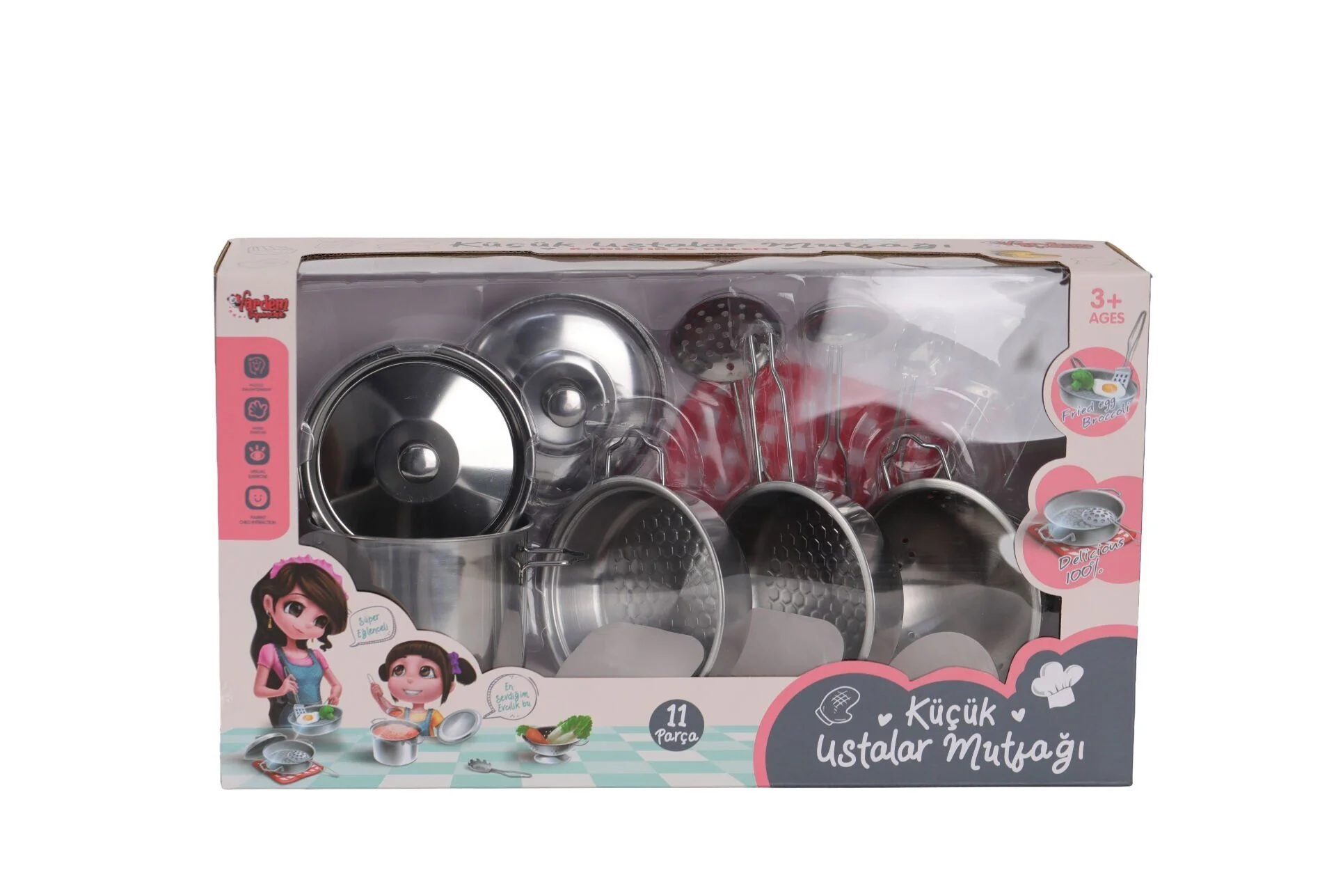 Parça Sayısı:11 Çocukların eğlenceli bir deneyim yaşamasına yardımcı olur. Mutfak Gereçleri Seti çocukların hayal gücünü arttırır ve yaratıcılıklarının gelişmesini destekler.