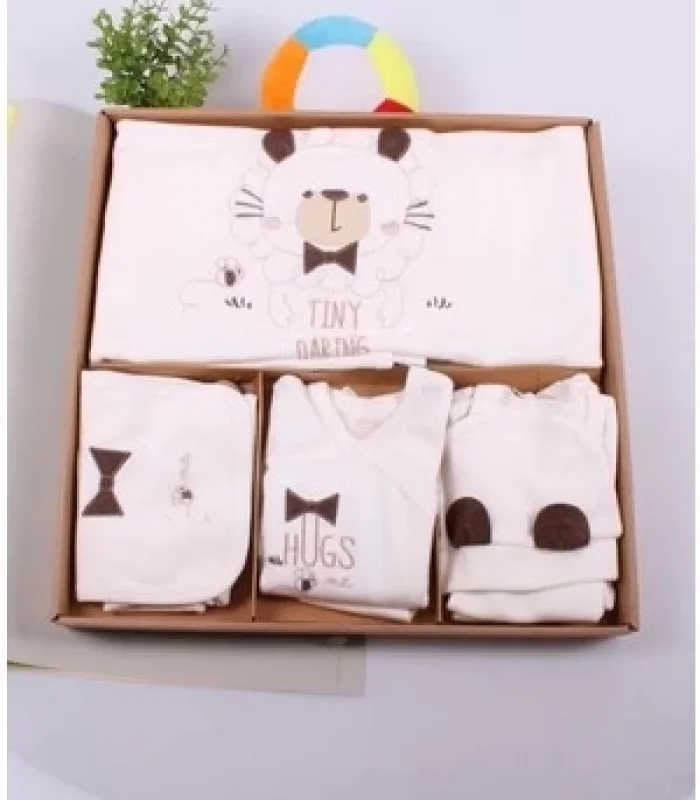 Ayıcık Desenli 10 Parça Kutulu %100 Pamuk Erkek Bebek Hastane Çıkışı
