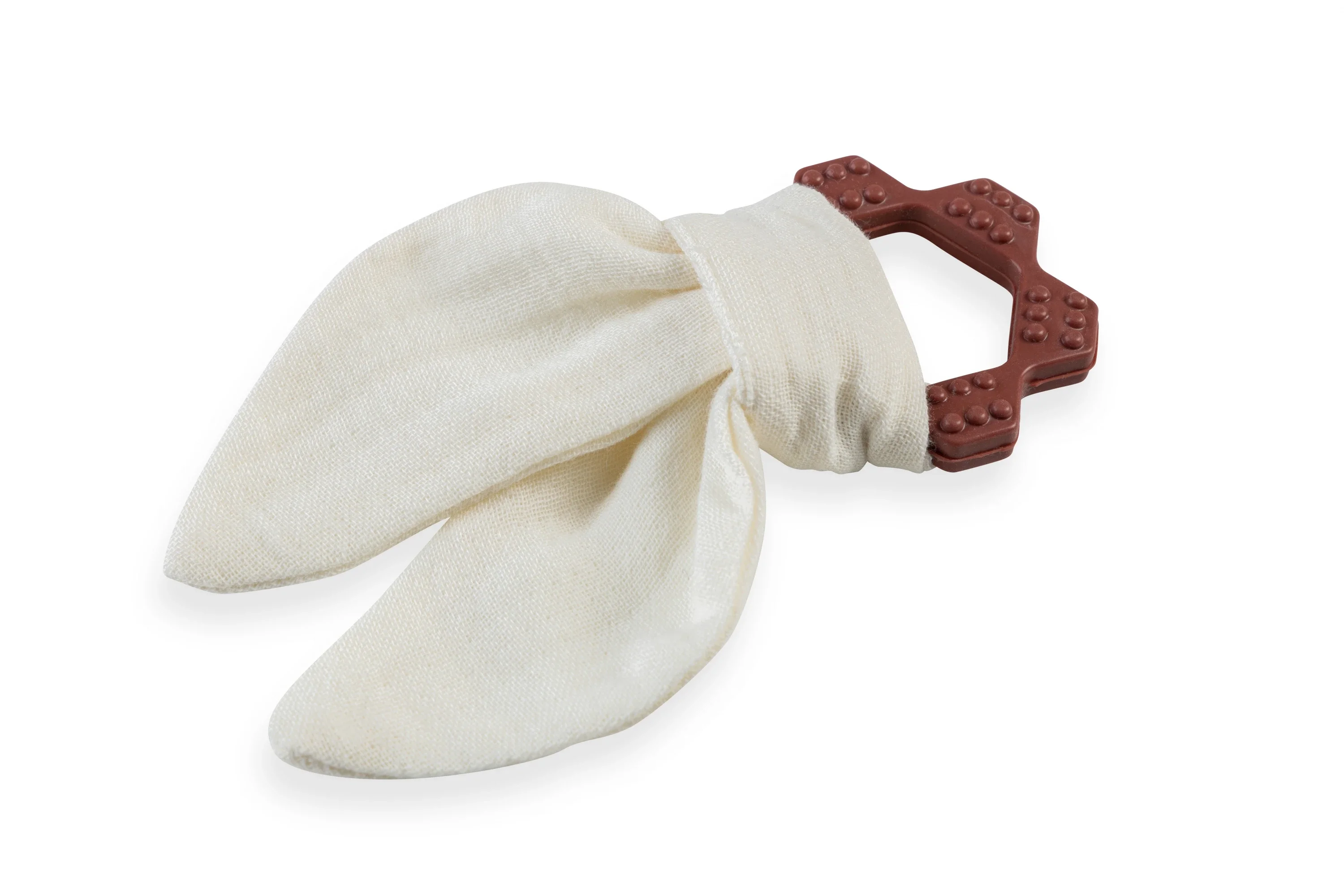 Bu ürün, hem anneler hem de bebekler için ideal bir kombinasyon sunar: Hijyenik bir önlük ve doğal bir diş kaşıyıcı bir arada. Ürün tasarımındaki pamuklu yapı ve silikon birleşimi, bebeklerin güvenle kullanabileceği bir deneyim oluşturur.