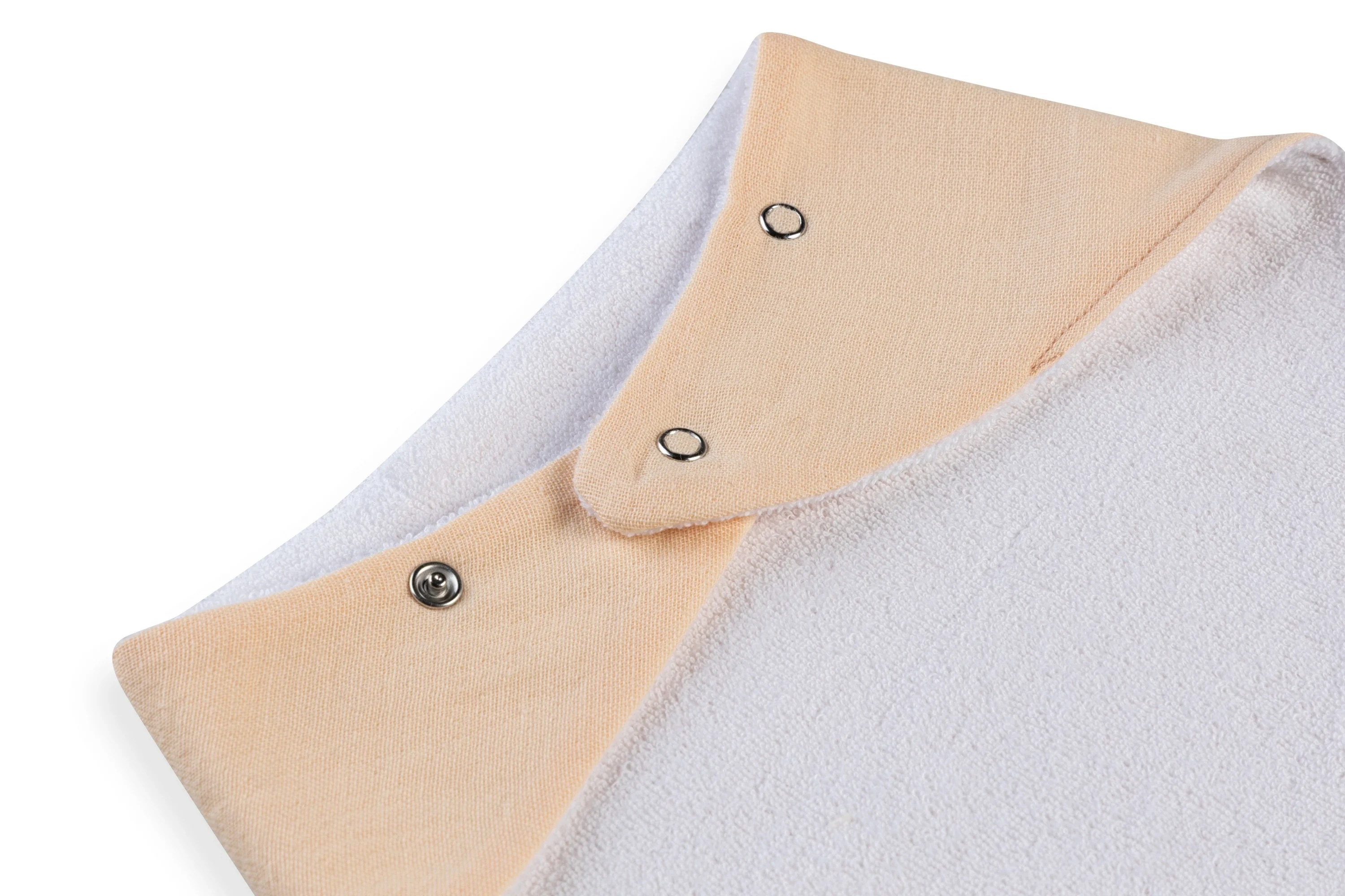 Önlüğün üst kısmında kullanılan %100 pamuk müslin kumaş, nefes alabilir ve yumuşak dokusu ile hassas bebek ciltlerinde tahrişe neden olmaz. Emici ve hafif yapısı, özellikle salya akışının arttığı diş çıkarma döneminde bebeğin kıyafetlerini kuru tutmaya yardımcı olur.