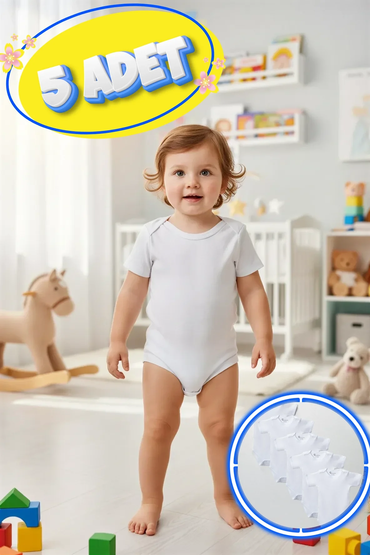 Çıtçıtlı body tasarımı sayesinde kolay giydirilip çıkarılır ve bez değişimini pratik hale getirir.