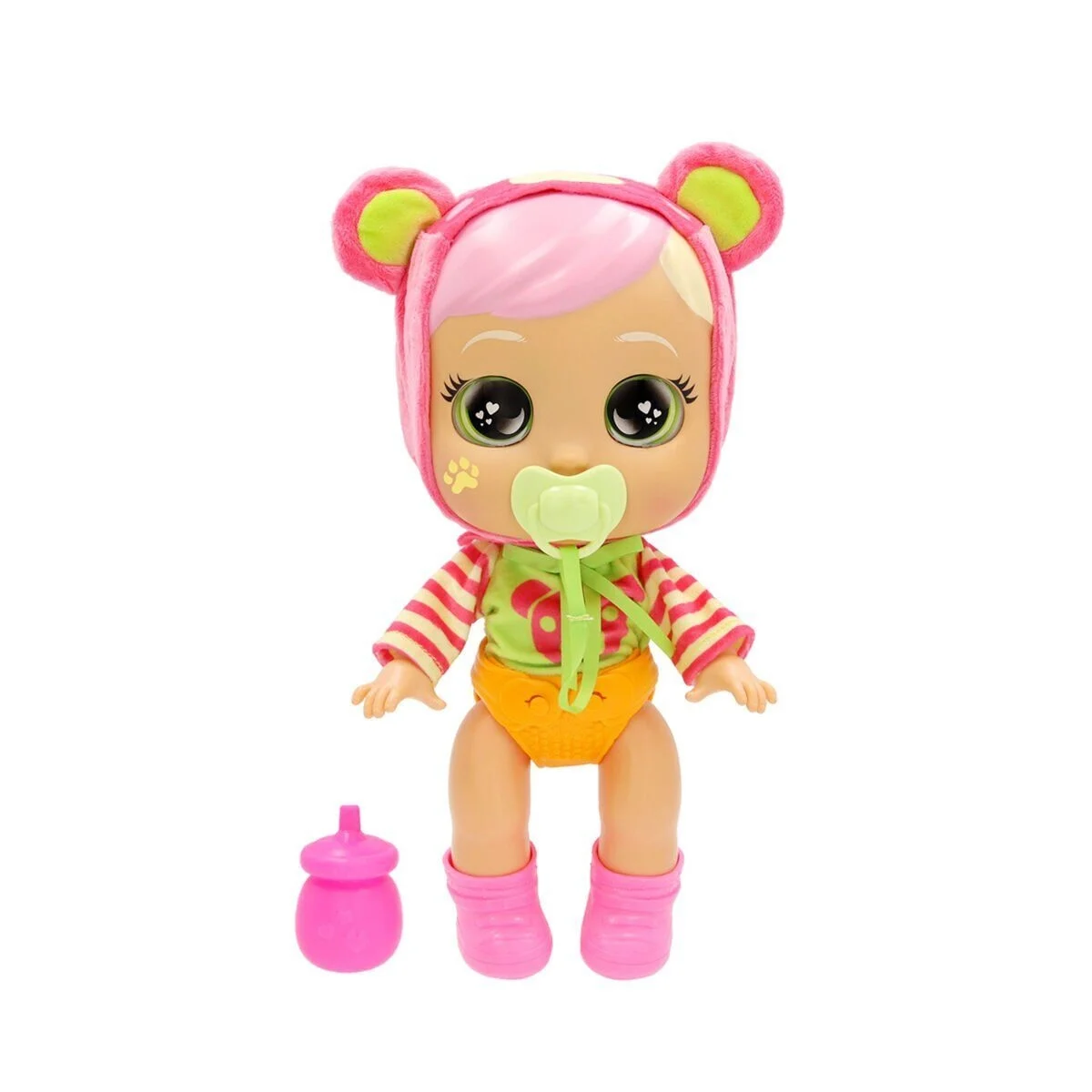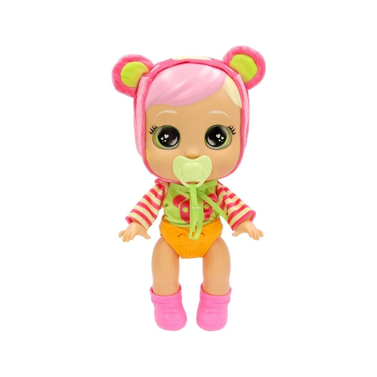 KOLİ ÖLÇÜSÜ (cm):29,00 41,50 32,00 ÜRÜN ÖLÇÜSÜ (cm):20,00 29,50 13,50 ASORTİ BİLGİSİ:TEK ASORTİ: SAM YAŞ BİLGİSİ:18M+ PİL BİLGİSİ:2X AAA (DAHİL) KULLANIM ŞEKLİEmziği çıkarıldığında gerçek gözyaşları dökerek ağlıyor, ayrıca ağladığında gözlerindeki kalpler ışık saçıyor. Emziği yerine takıldığında hemen sakinleşiyor ve ağlaması duruyor. 10 farklı bebek sesi çıkarabiliyor.