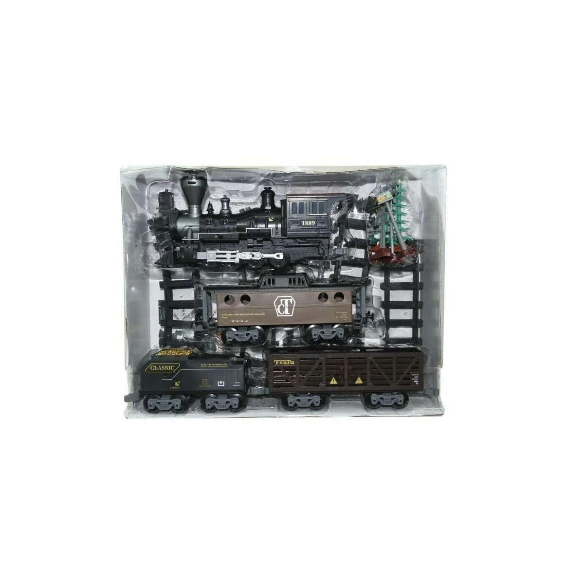 Kutu İçerisinde; 1 adet lokomotif, 1 adet yolcu vagonu, 1 adet kömür vagonu, 1 adet hayvan taşıma vagonu, 1 adet su pipeti, 4 adet düz ray ve 6 adet kavisli ray yer almaktadır.