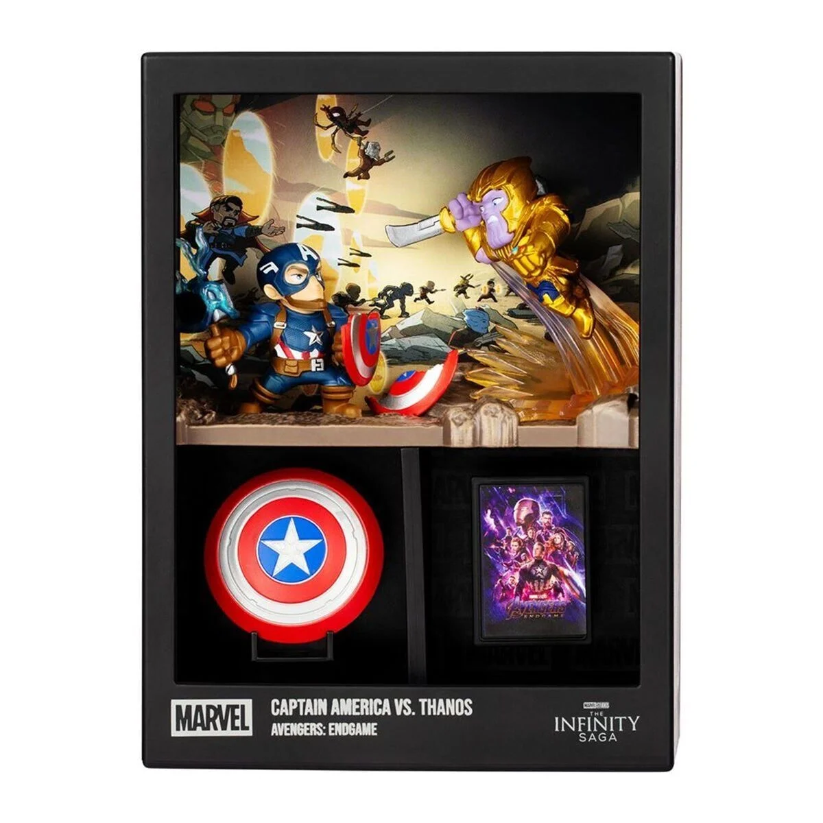 MV03, Marvel Studios’un Avengers: Endgame filminden epik bir anı, sergilenebilir bir diorama içinde Captain America vs. Thanos sahnesiyle hayranların beğenisine sunuyor. Koleksiyon seviyesinde detaylı boyamalara sahip heykelcikler kullanılıyor.