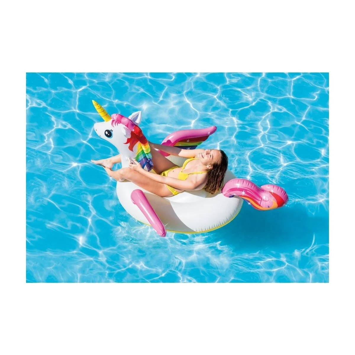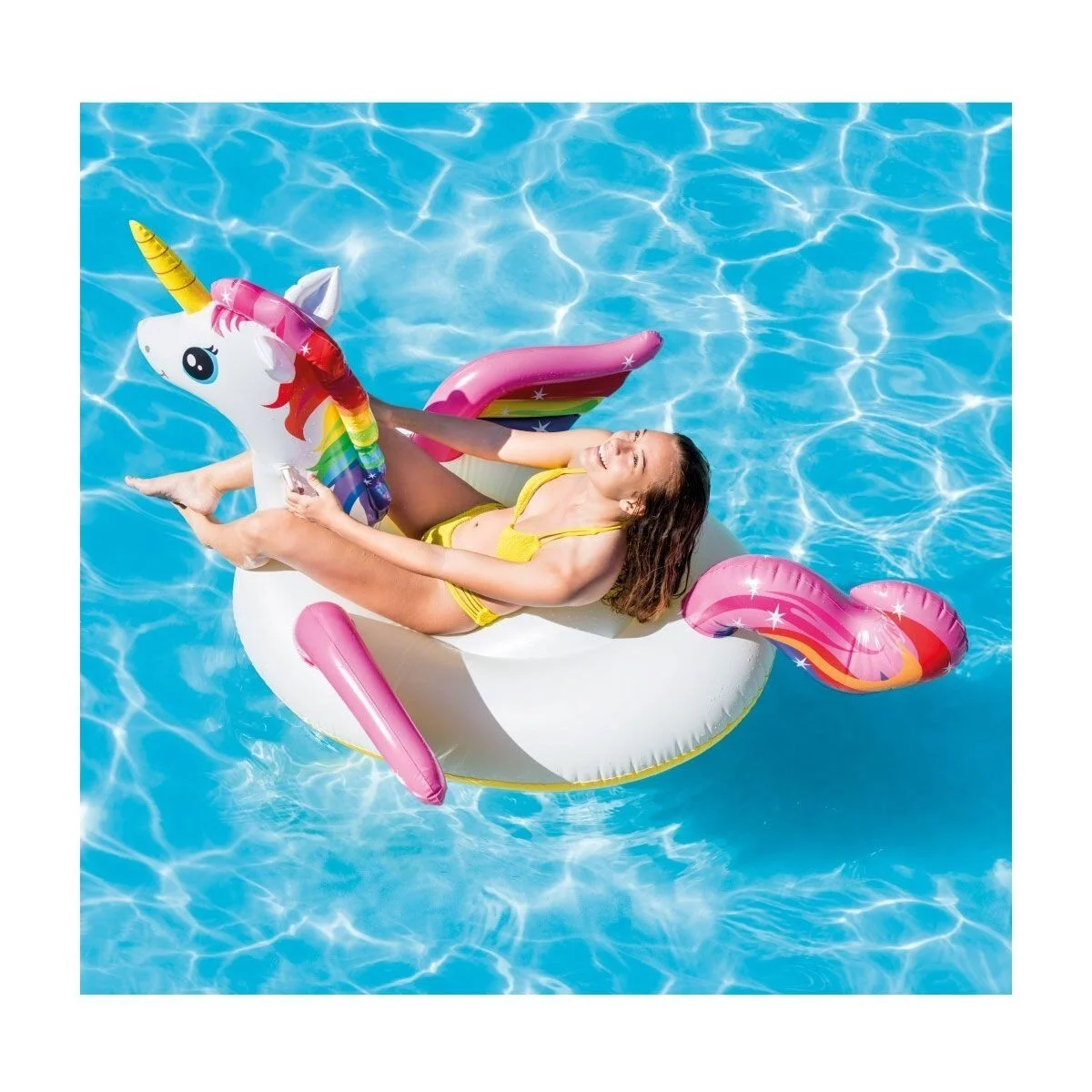 Özel tutunma alanları ve geniş oturma zemini ile miniklerin deniz keyfine keyif katan Intex Unicorn Binici sizin de çok hoşunuza gidecek.