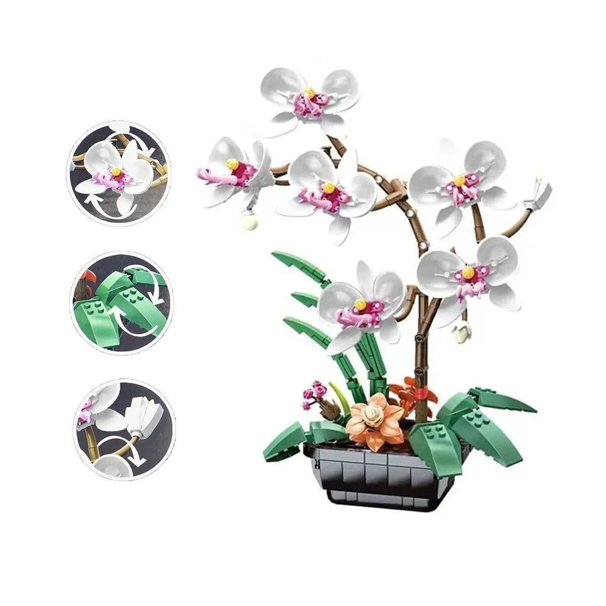 JK29012 JAKİ BEYAZ ORKİDE SAKSIDA 581 PARÇA BLOCK OYUNCAK