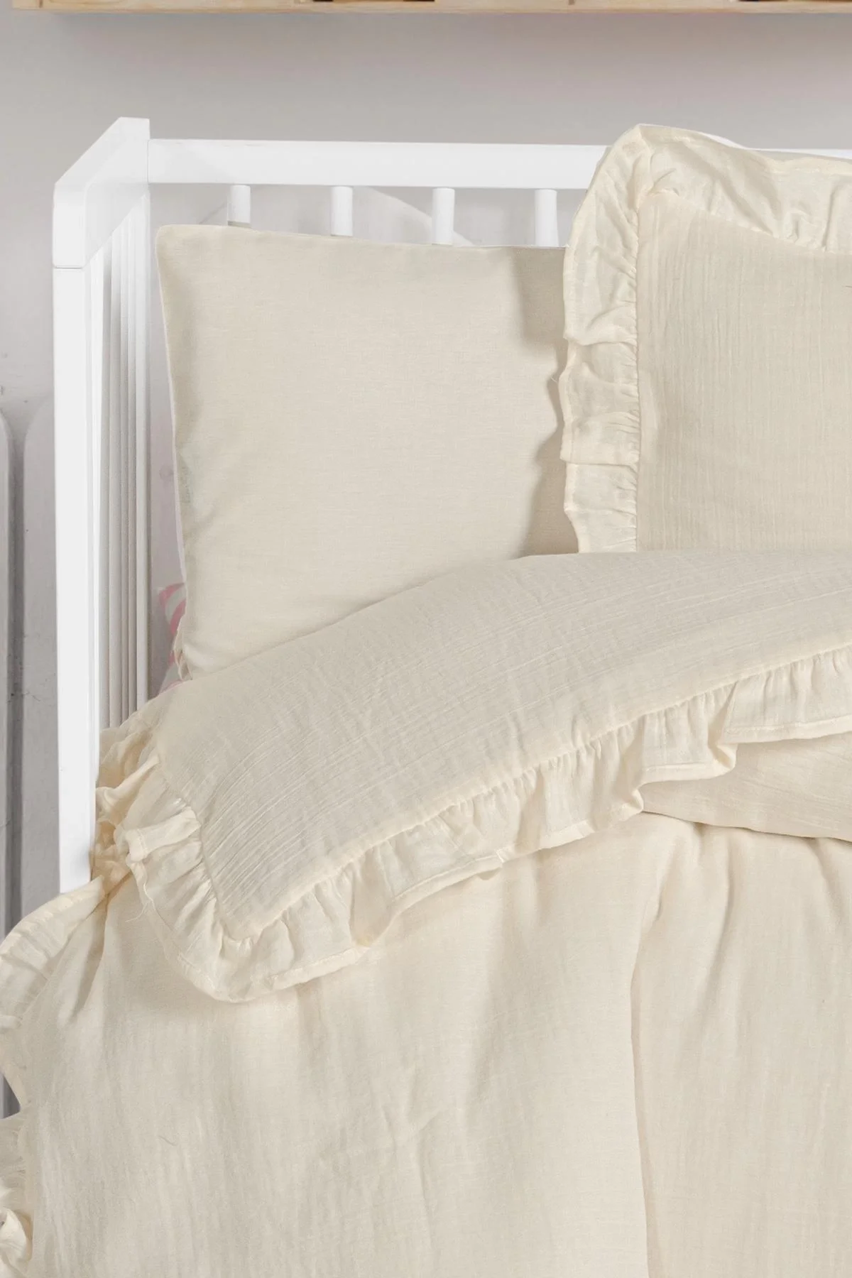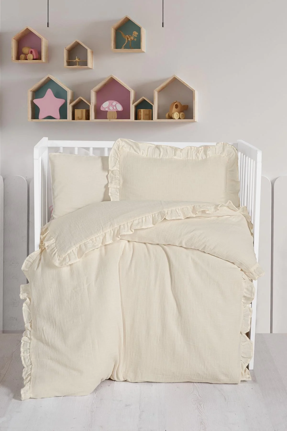 Fırfırlı %100 Pamuk Müslin Bebek Nevresim Takımı – Doğal, Şık ve Konforlu