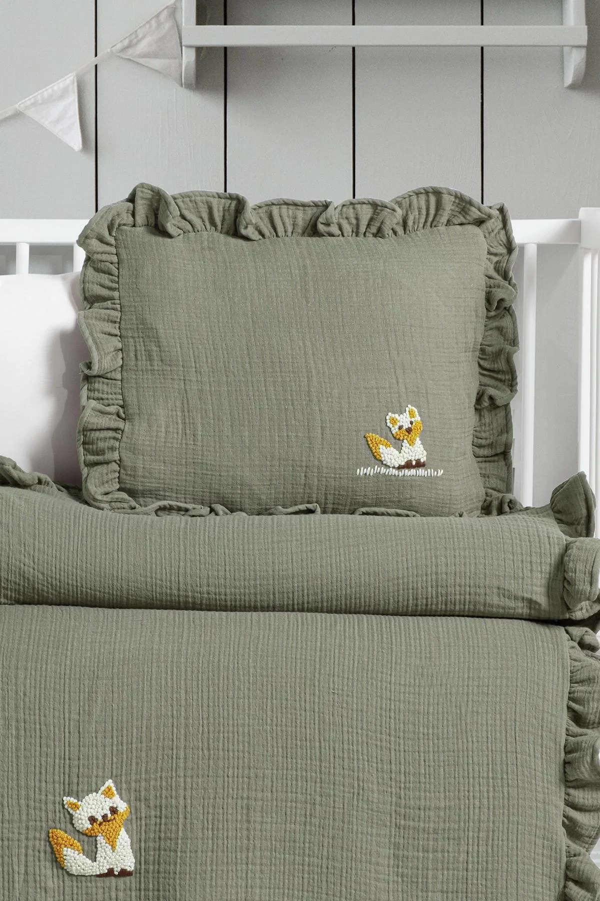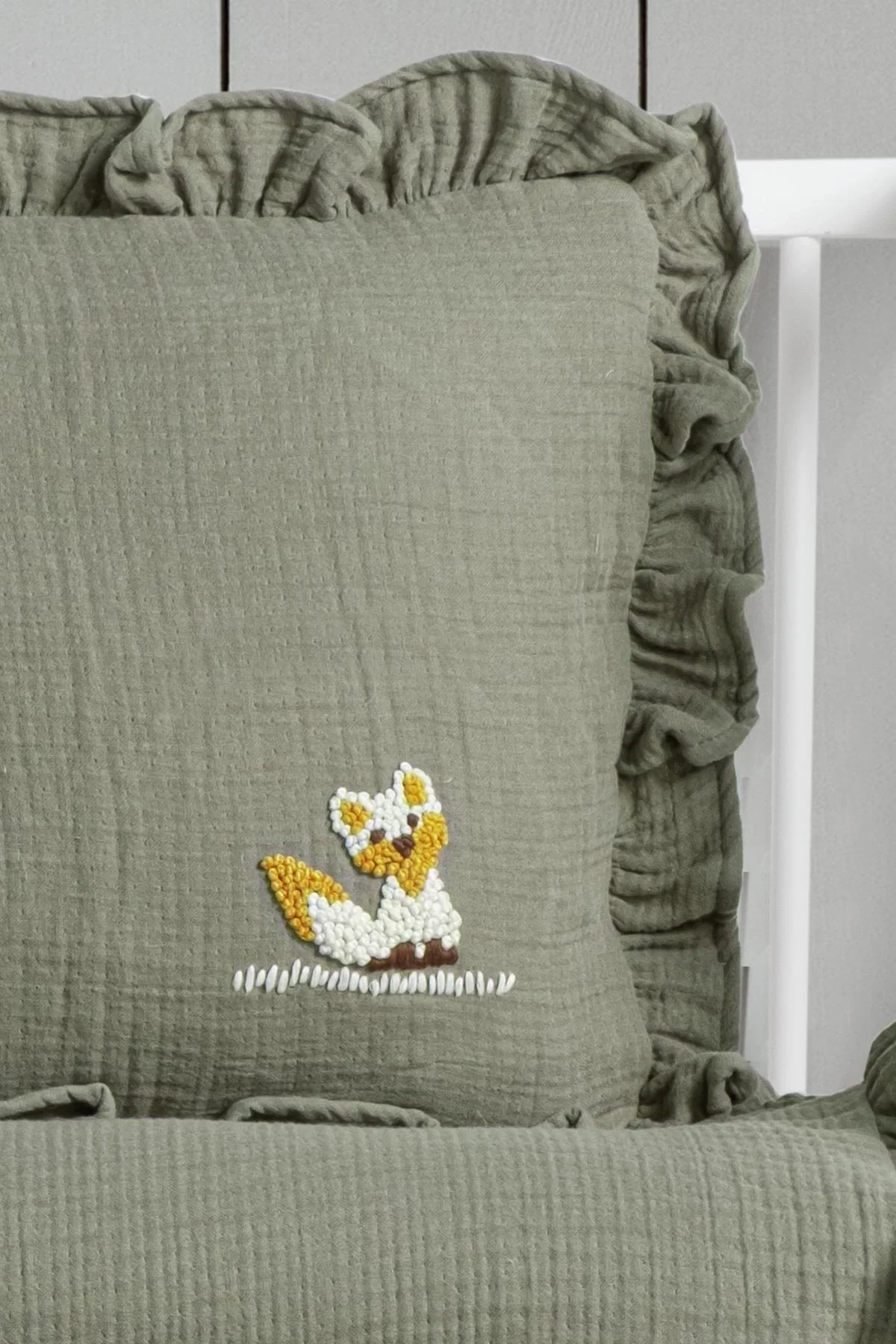 ✔ Nakışlı Fırfırlı Müslin Yastık Kılıfı – 35x45 cm (1 Adet)