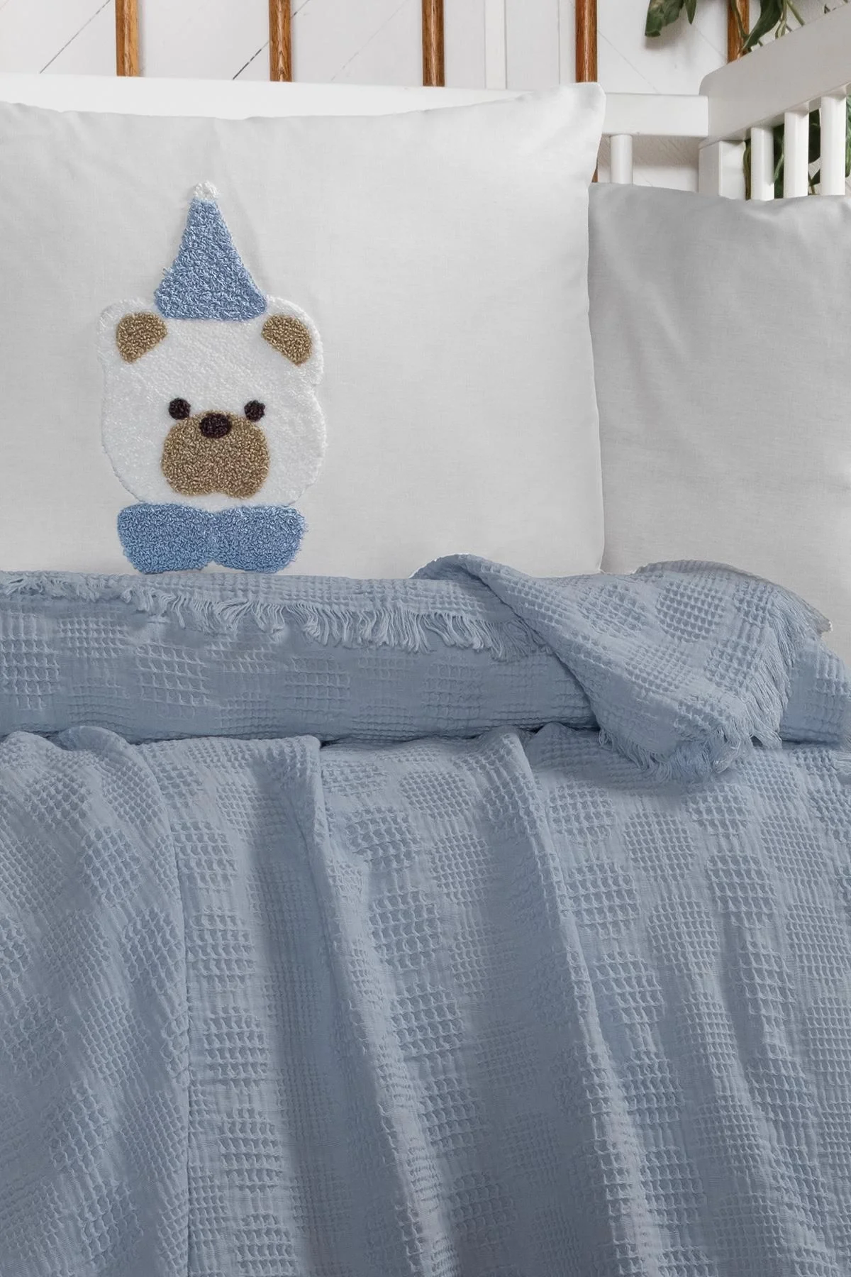 Kanz Bebek Waffle Müslin Nakışlı Pike Knz-021 Teddy