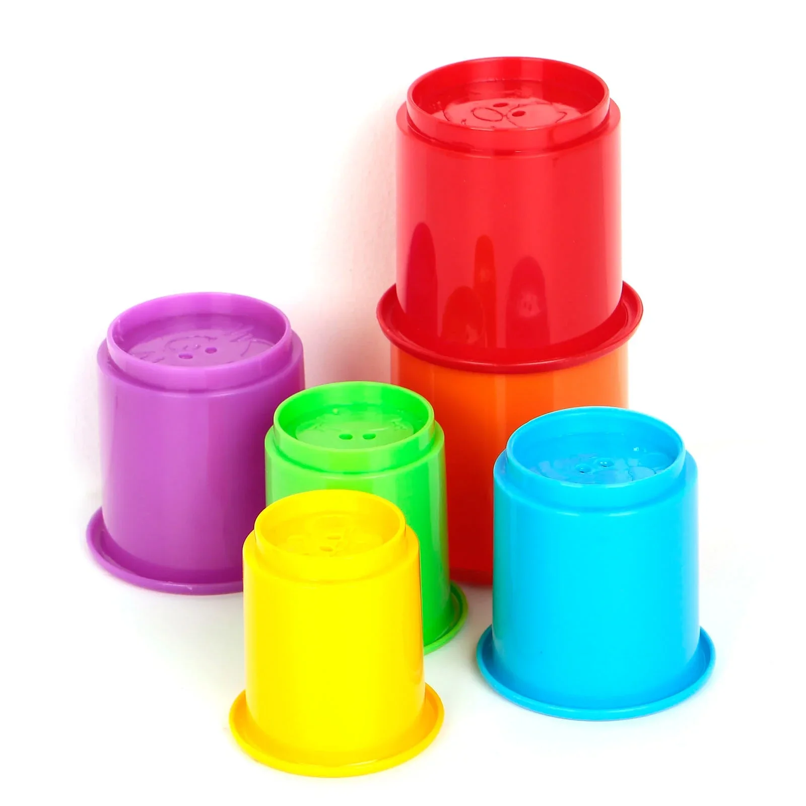 Çocuklar için uygun olan eğitici kapları ister iç içe ister üst üste dizebilirler. Ürün bebeğiniz büyük, küçük kavramlarını ve renkleri eğlenerek öğrenmesini sağlar. Bebeğin kavrayıp tutması için en uygun boyutlardadır. Kuleleri üst üste dizmek bebeğin el-göz koordinasyonunu geliştirmesine yardımcı olur. Ayrıca büyükten küçüğe sıralamak ve parçaları birbiri içerisine yerleştirmek, bebeğin boyut ilişkilerini ve nesnelerin birbirine ne şekilde uyduğunu anlamasını sağlar. Bebeğinizin düşünme ve problem çözme yeteneğini geliştirir. Bebeklerin motor becerilerinin gelişimini destekler, fiziksel gelişimine katkıda bulunur, görsel ve işitsel duyularının sağlıklı gelişimine yardımcı olur. Set içerisinde 6 adet renkli kap yer almaktadır. Yaş Aralığı: +12 Ay Temizleme Talimatı: Su ile yıkayarak temizleyebilirsiniz. Yüksek sıcaklıklara maruz bırakılması durumunda ürün deforme olacağı için tavsiye edilmez. Temizlik sırasında ağartıcı ve aşındırıcı kimyasallar kullanılmamalıdır.