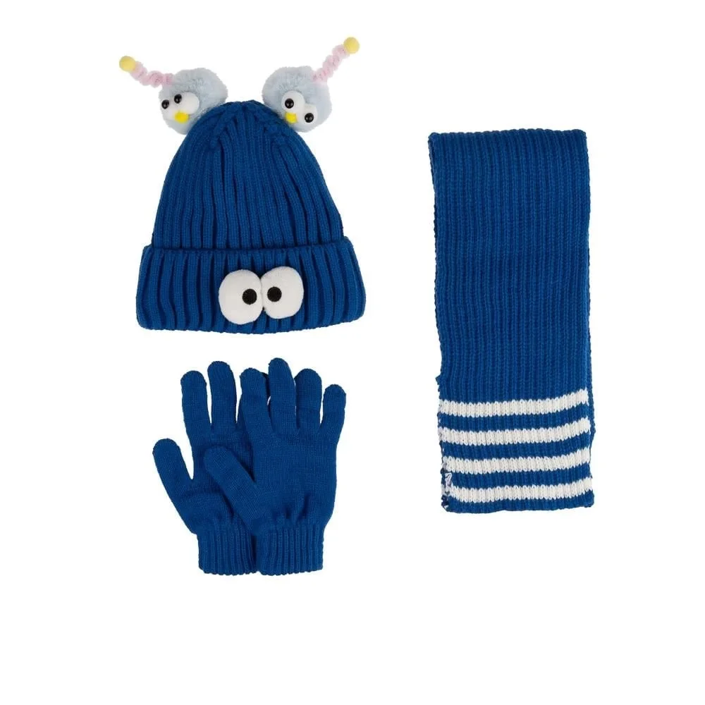 Kitti Çocuk Kız Atkı Bere Eldiven Takım (4-8 Yaş) K24170-09 Mavi