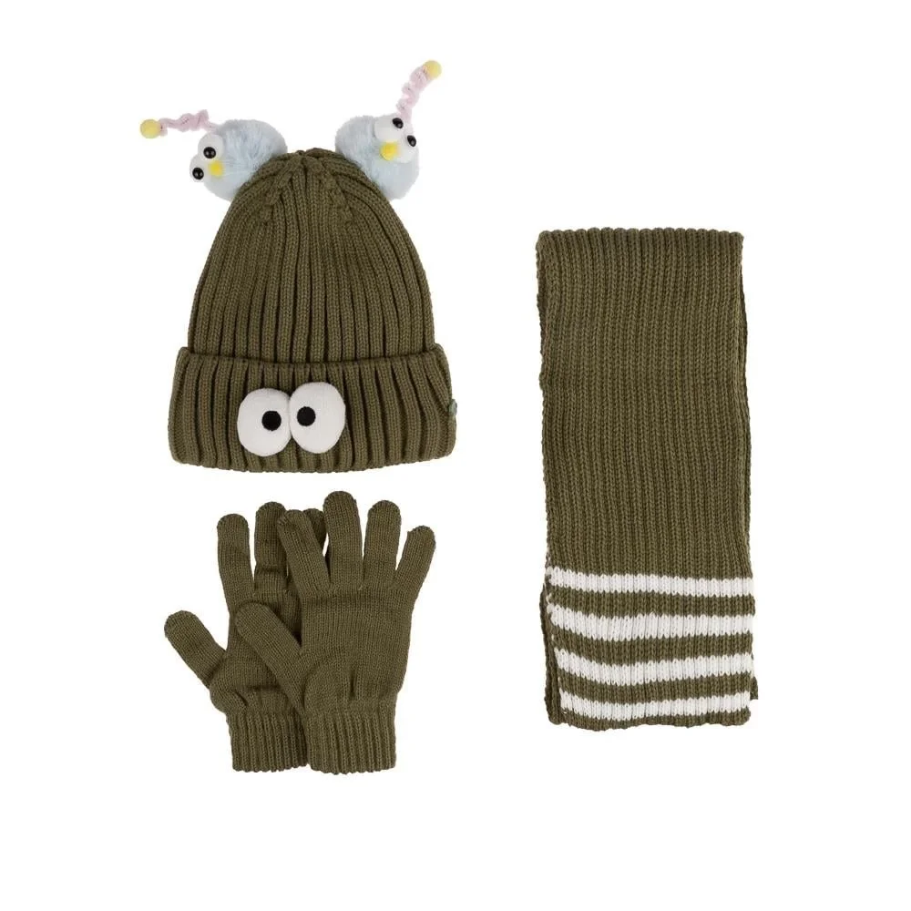 Kitti Çocuk Kız Atkı Bere Eldiven Takım (4-8 Yaş) K24170-09 Yeşil