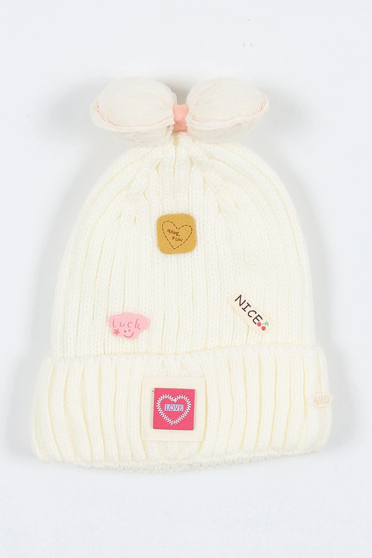 Kitti Çocuk Kız Kulaklı Bere (4-8 Yaş) K24130-02 Krem