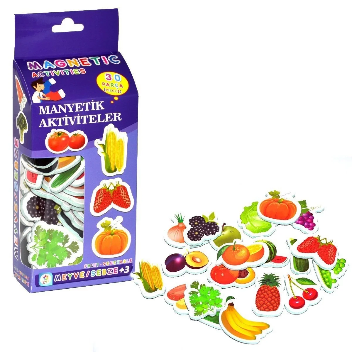 İçinde bulunan 30 Manyetik Kart ile çocuğunuz meyve ve sebzeleri eğlenerek öğrenecek.