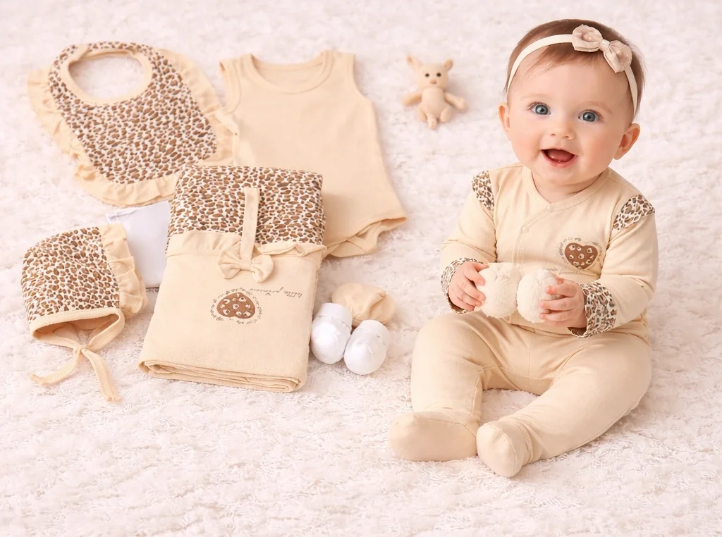 CANDAR Leopar Desenli %100 Pamuk 8'li Yeni Doğan Seti, bebeğiniz için şıklığı ve konforu bir arada sunuyor.