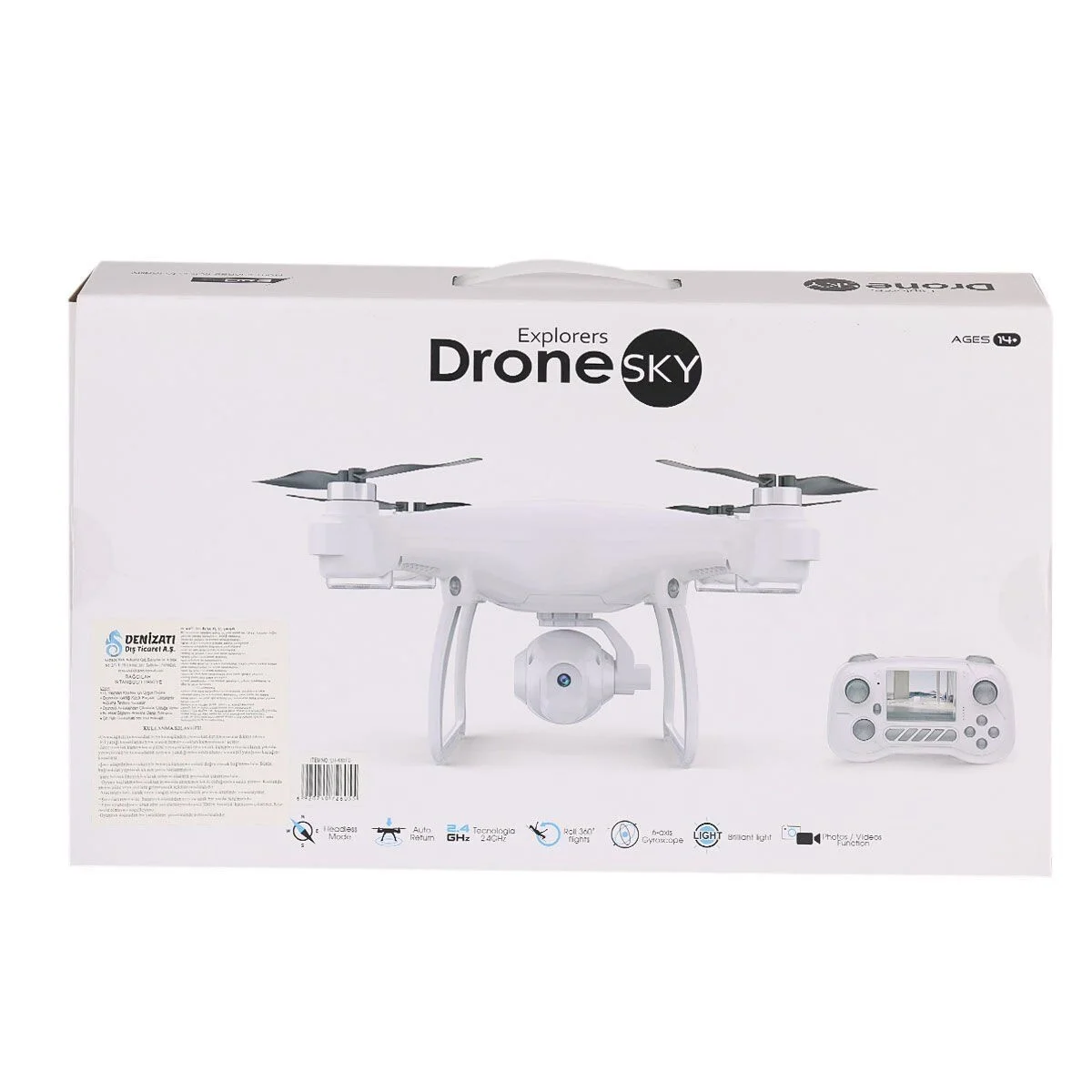 Başsız Mod Otomatik Dönüş 2.4GHz 6 Axis Gyroscope HD Kamera Uzaktan kumanda ayarlı kamera Fırçasız Motor Koruyucu Halka Savunma Işık Gösterisi Fotoğraf/Video Fonksiyonları Yaş:14+ 3x1.5V AA pil ile çalışmaktadır. Piller dahil değildir. Kutu Boyut:6,7x44,8x26,2 cm