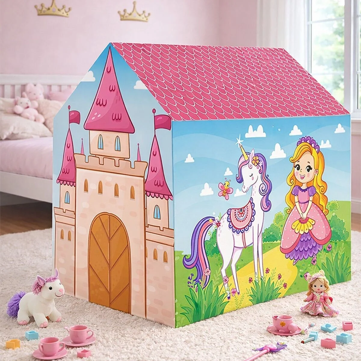 70x100 cm ölçülerinde, renkli ve canlı desenlere sahip olan bu çadır, hafif ve taşınabilir yapısıyla her yere kolayca kurulabilir. Çocuklara özel oyun, dinlenme ve hayal kurma alanı sunan ürün, hava alan kumaşı sayesinde güvenli ve konforludur. İç mekân ve dış mekân kullanımı için uygundur.