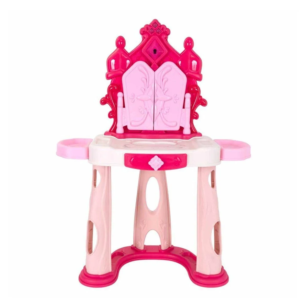 Şarkılar ve aynanın tepesinden gelen ışık gibi işlevlere sahip olup yalnızca kalenin tepesine elinizi kaldırdığınızda etkinleştirilen bu güzellik masası, tüm küçük kızları büyülemek için geliyor! Set, minik prenseslere güzelleştirme aktiviteleri sırasında rahat bir alan sunan bir sandalye ile tamamlanıyor.