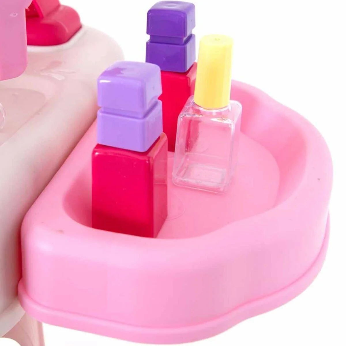 Kutu içerisinde; aynalı makyaj masası, sandalye, oje, rujlar, tarak, saç kurutma makinesi, tokalar, takılar ve çıkartma bulunmaktadır.