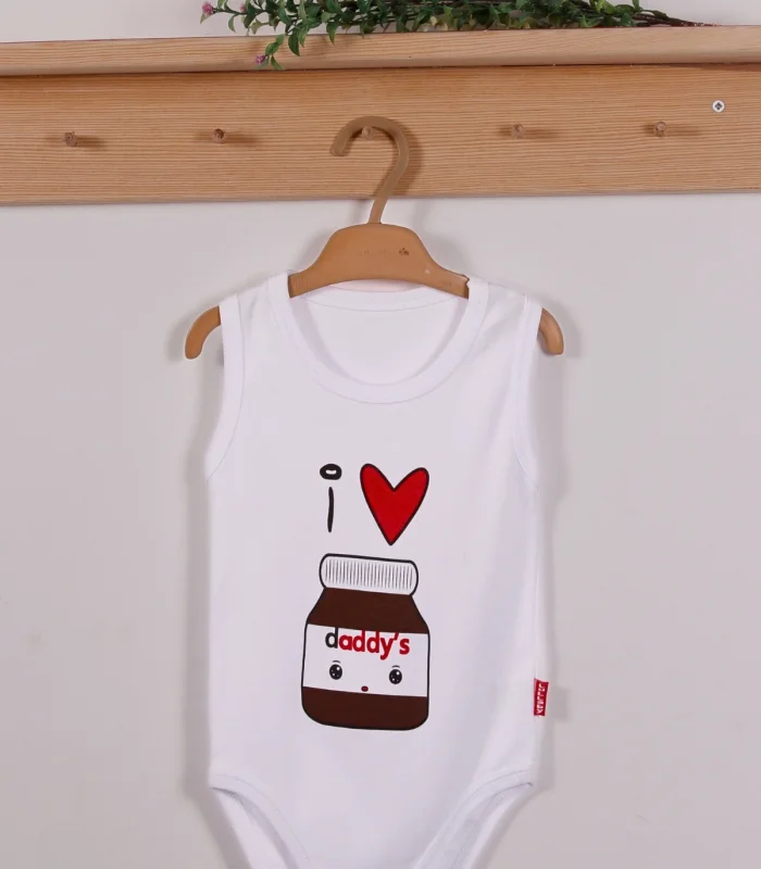 Yeni Doğan 3-6-9-12 Ay Daddy's Cikolata Desenli Askılı Unisex Body Beyaz